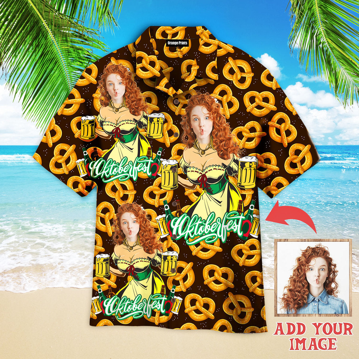 Custom Face Girl Germany On Pretzel And Beer Custom Hawaiian Shirt | For Men & Women | Hwp1230