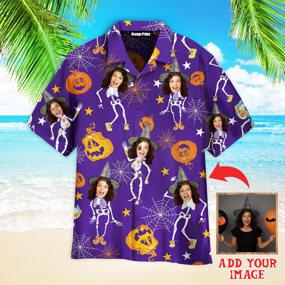 Custom Face On Purple Halloween Skeletons Custom Hawaiian Shirt | For Men & Women | Hwp1260