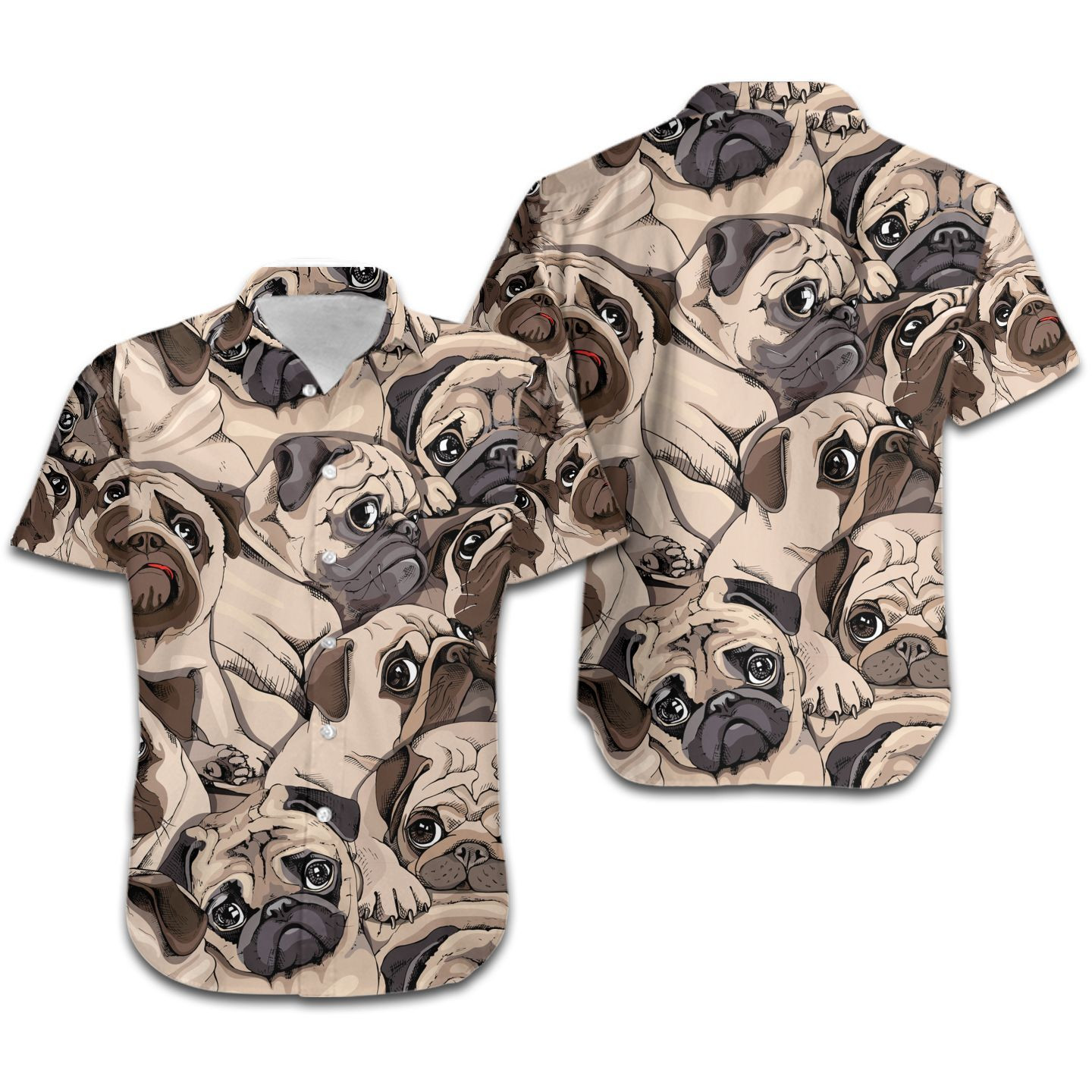Cute Pugs Portraits Men Hawaiian Shirt For Dogs Lovers – Gift For Pug Dog Lovers