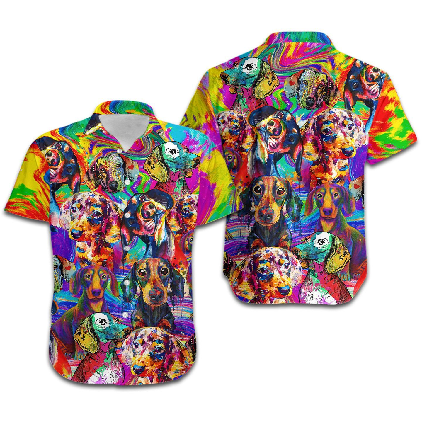 Dachshund Colorful Oil Painting Men Hawaiian Shirt – Gift For Dachshund Dog Lovers