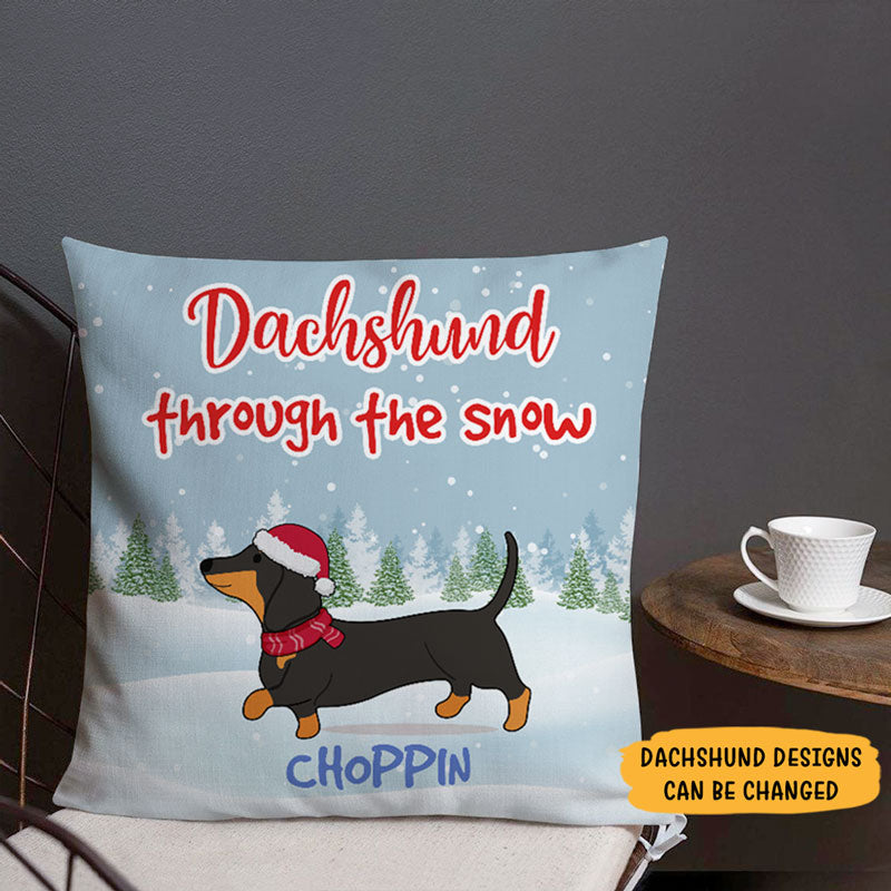 Dachshund Through The Snow, Personalized Pillows, Custom Christmas Gift For Dog Lovers