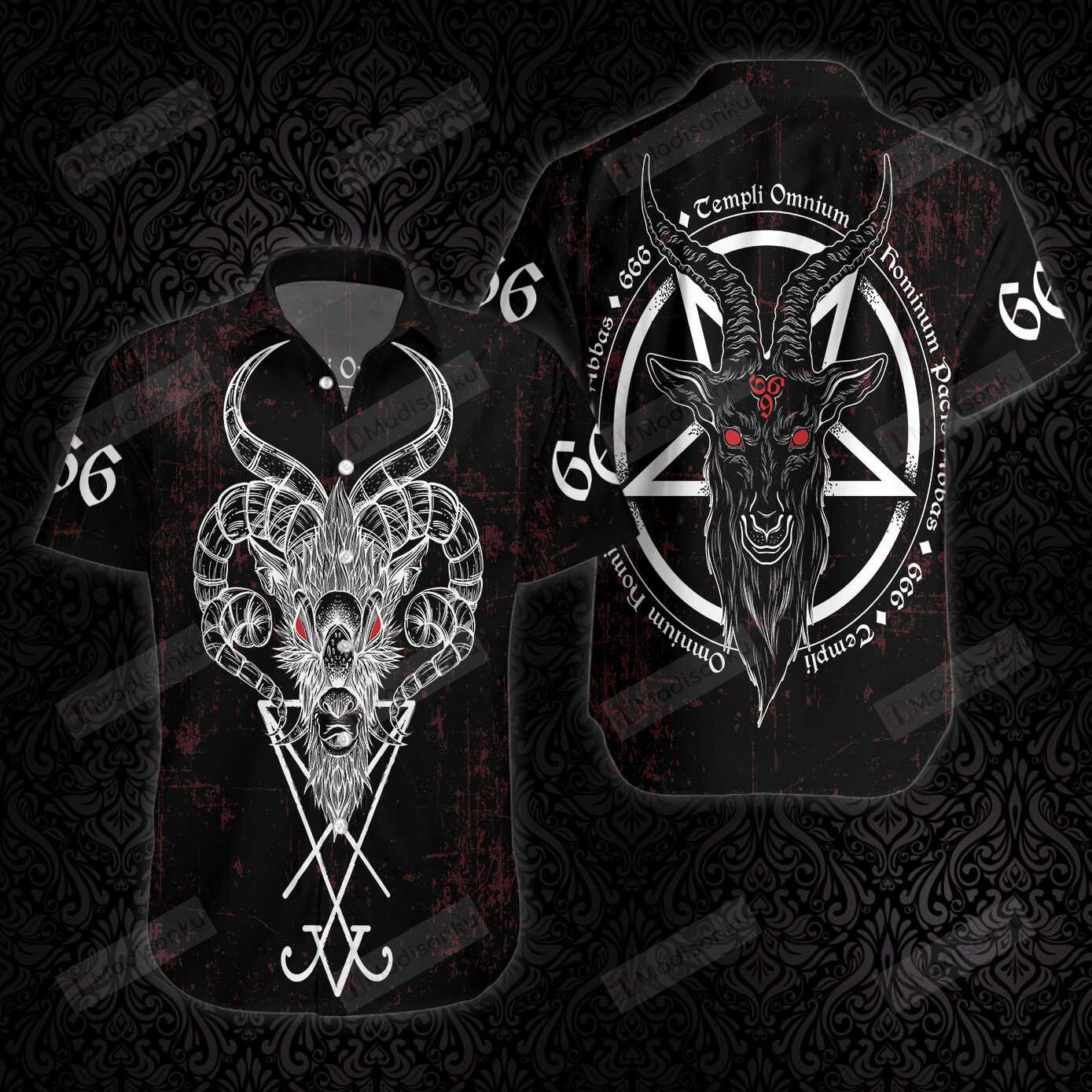 Demon Head With Sigil Satanic Goth Gothic Hawaiian Shirt