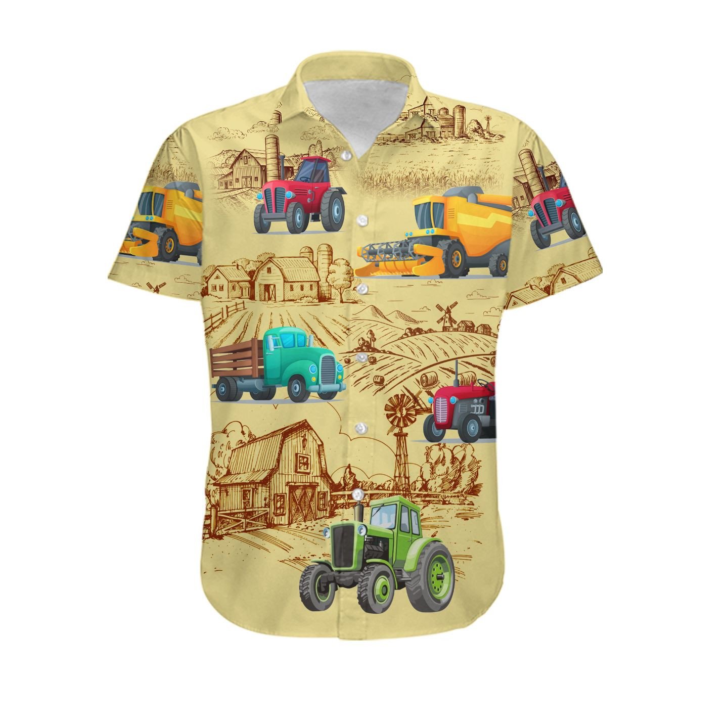 Farmer Tractor Field Farm Image Background Women Button Up Hawaiian Shirt For Farm Lovers In Daily Life Unique Gifts