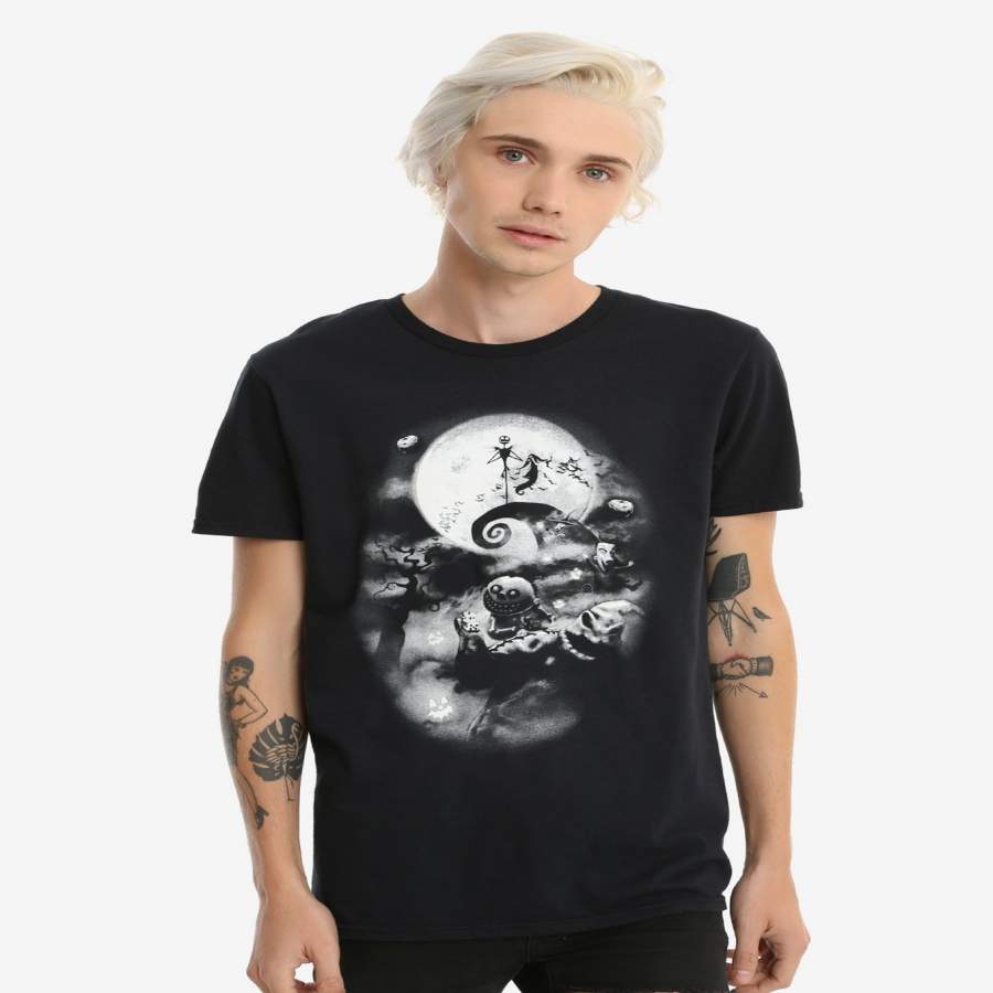 Fashion Men’s Cotton T-Shirt THE NIGHTMARE BEFORE CHRISTMAS DARK SPIRAL HILL GLOW T-SHIRT Funny T-shirts