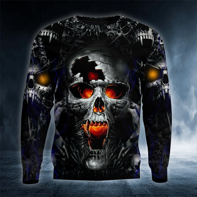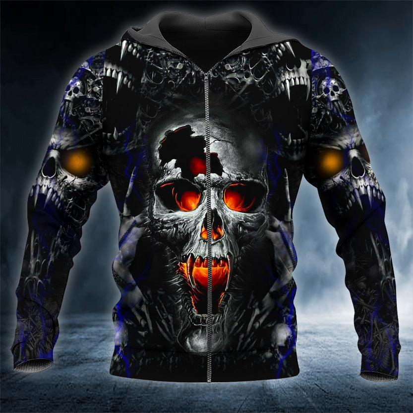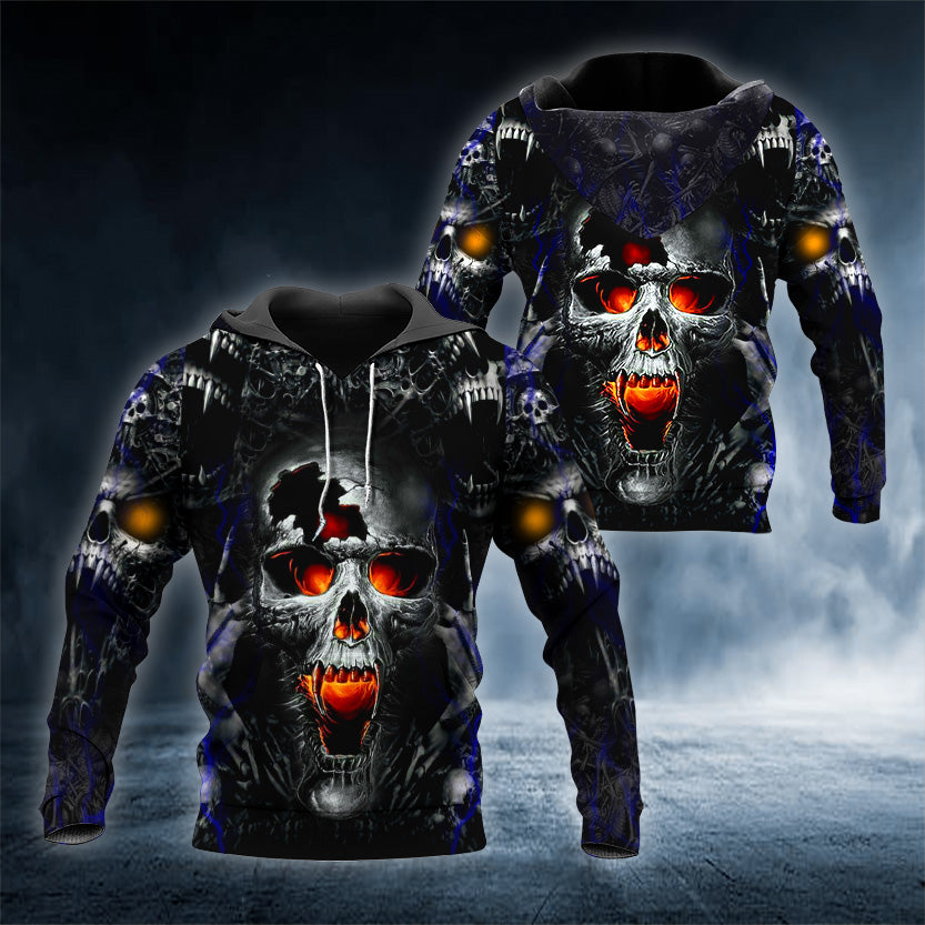 Fire Eyes Vampire Skull 3D Printed Hoodie