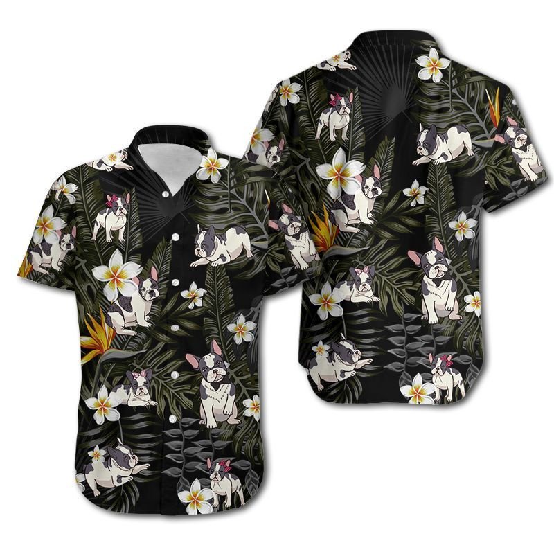 French Bulldog Tropical Flowers Men Hawaiian Shirt For Dog Lovers – Gift For French Bulldog Dog Lovers
