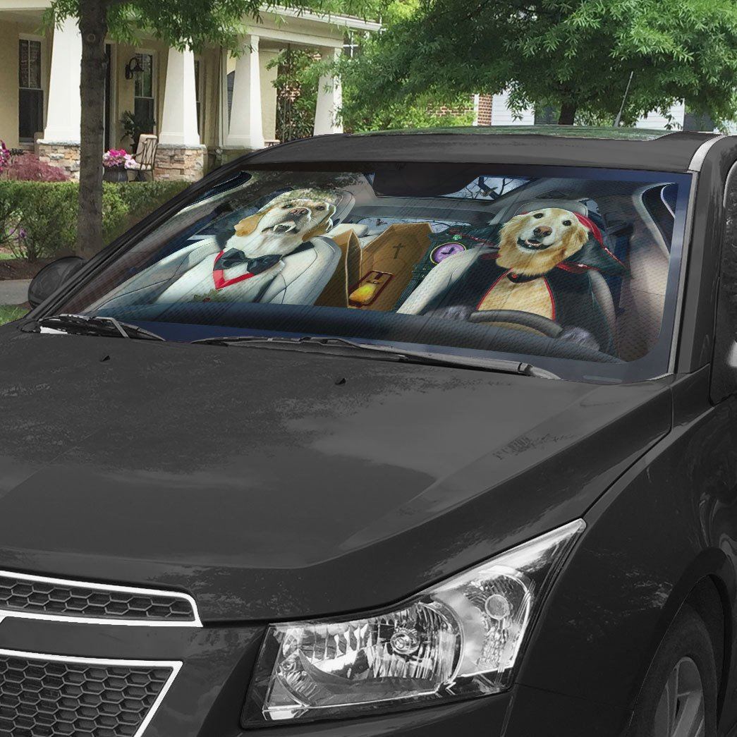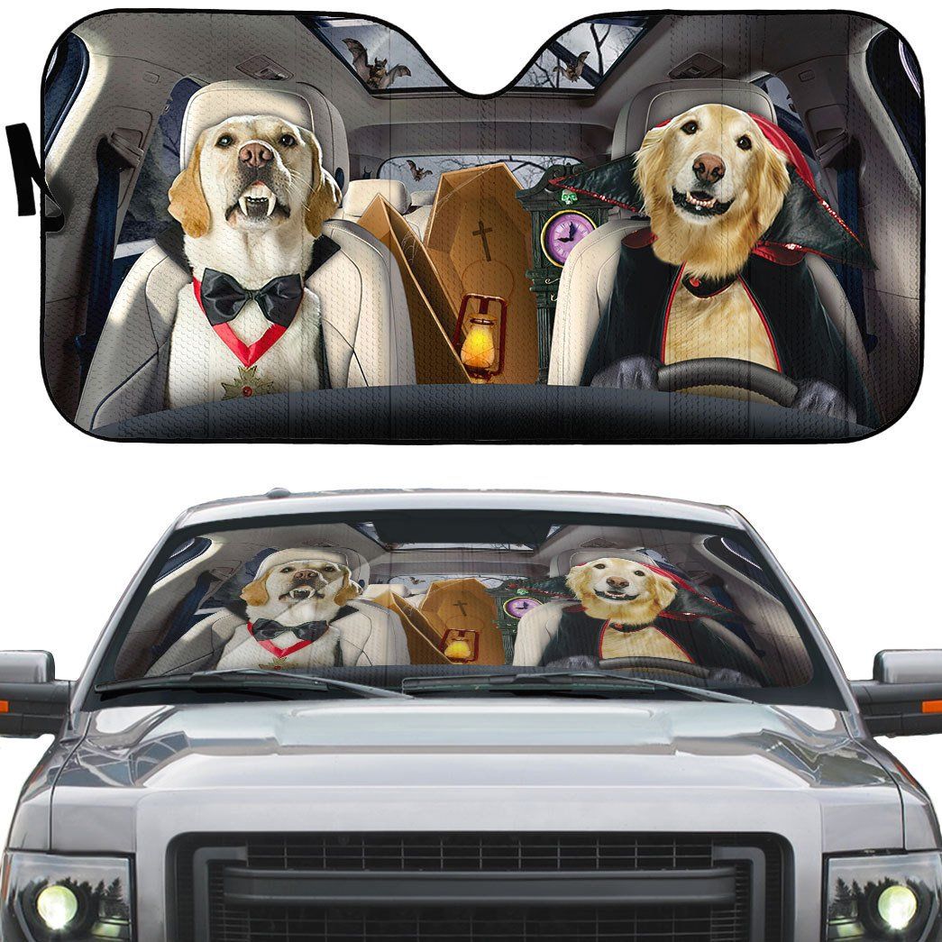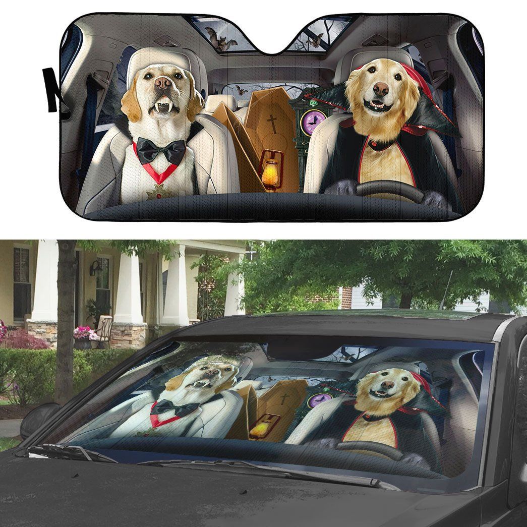 Gearhumans 3D Golden Retriever Vampire Custom Car Auto Sunshade