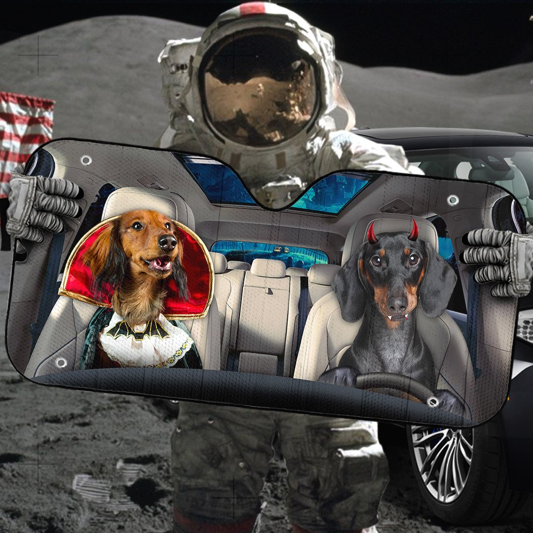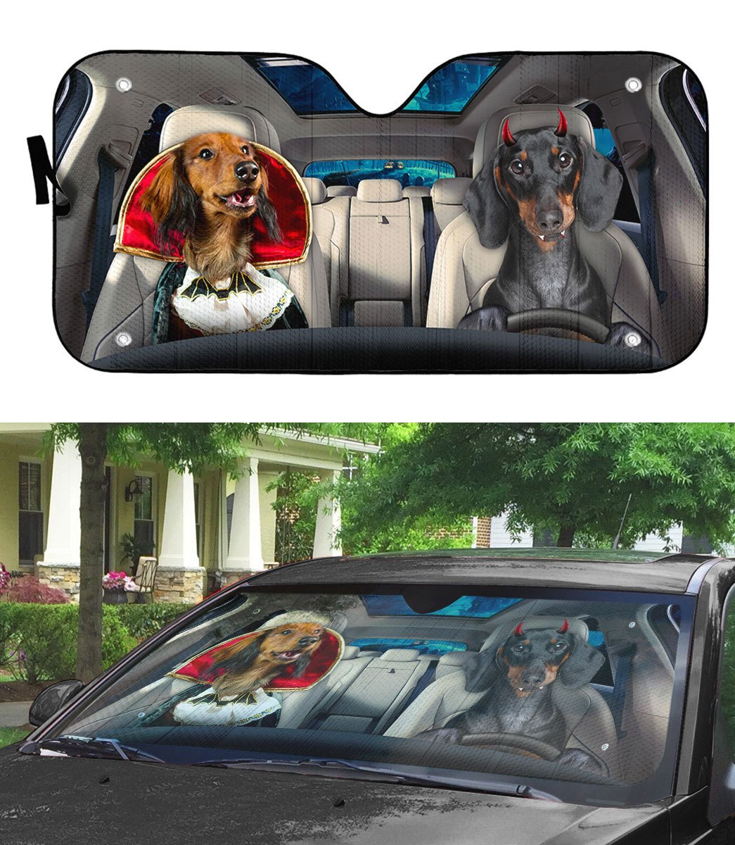 Gearhumans 3D Halloween Dachshund Dogs Vampire Custom Car Auto Sunshade