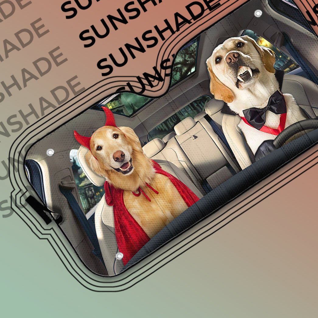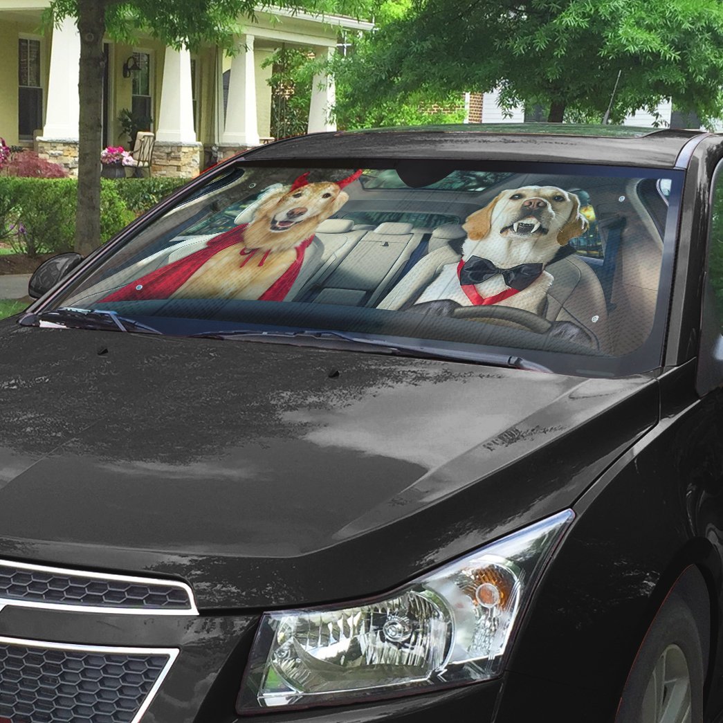Gearhumans 3D Halloween Labrador Retriever Dogs Vampire Custom Car Auto Sunshade