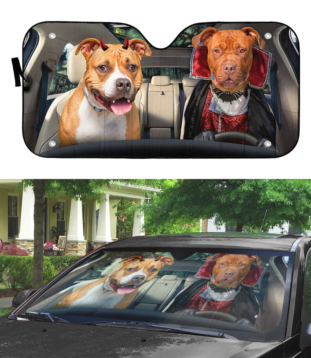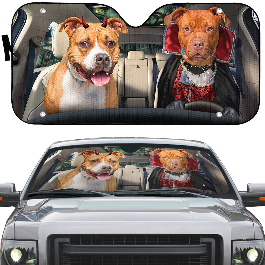 Gearhumans 3D Halloween Pitbull Dogs Vampire Custom Car Auto Sunshade