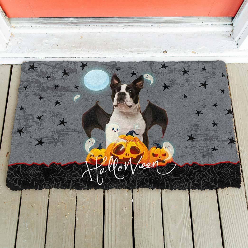 Gearhumans 3D Halloween Vampire Boston Terrier Custom Doormat