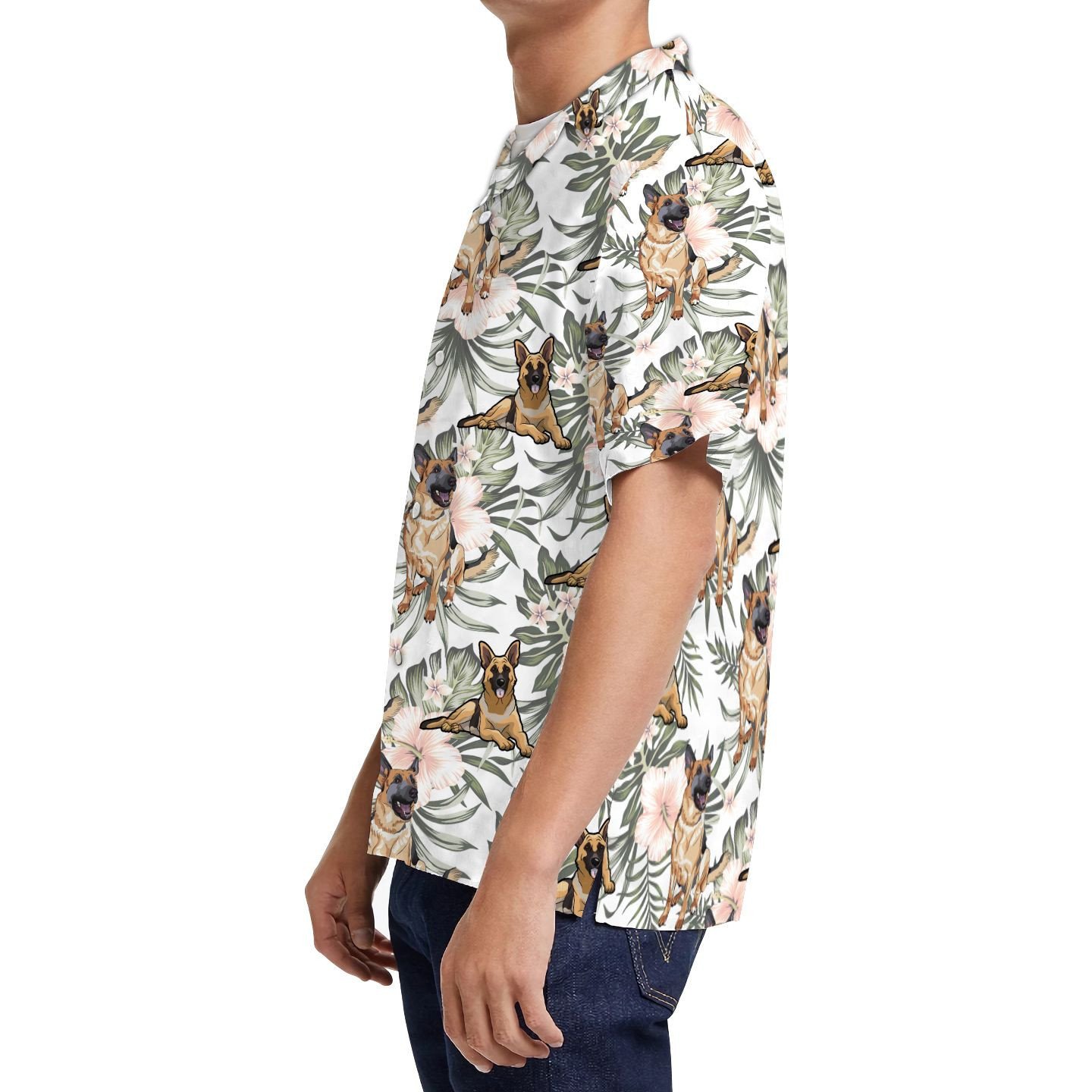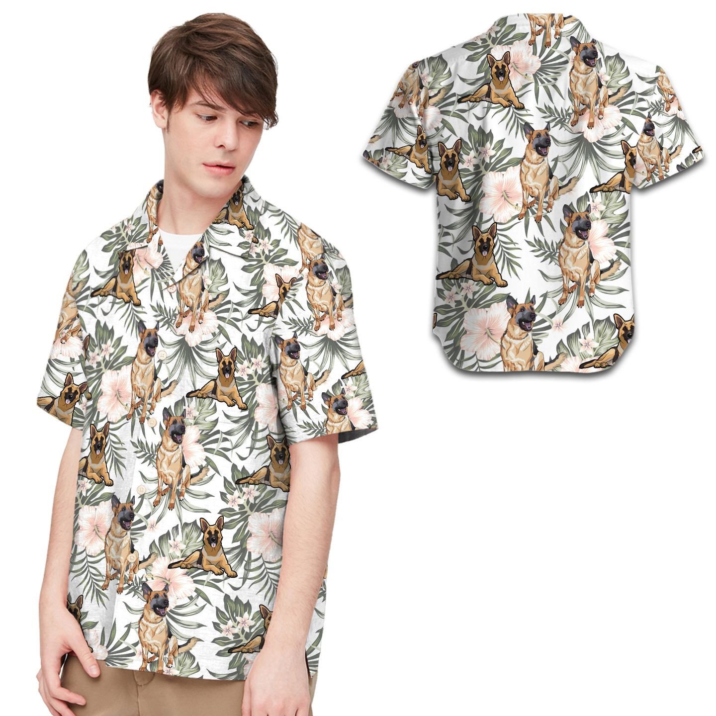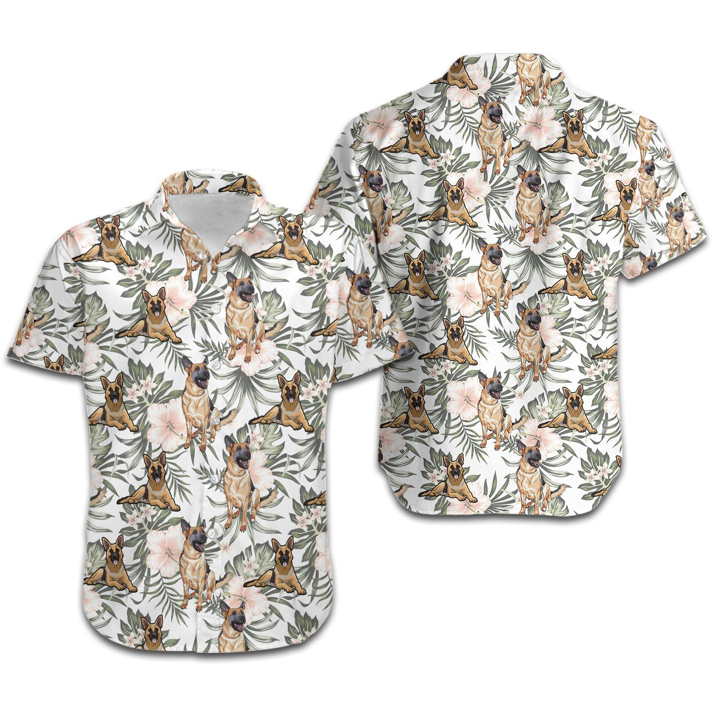 German Shepherd Tropical Leaves Hibiscus Men Hawaiian Shirt For Dog Lovers – Gift For German Shepherd Dog Lovers