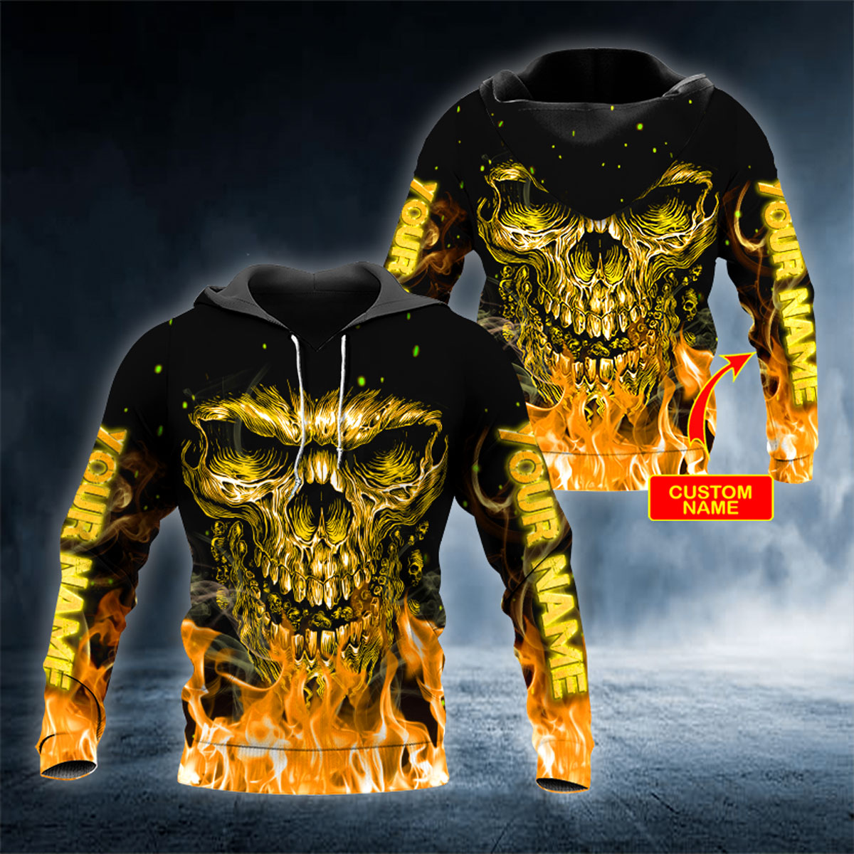 Gold Vampire Skull Personalized 3D Printed Hoodie