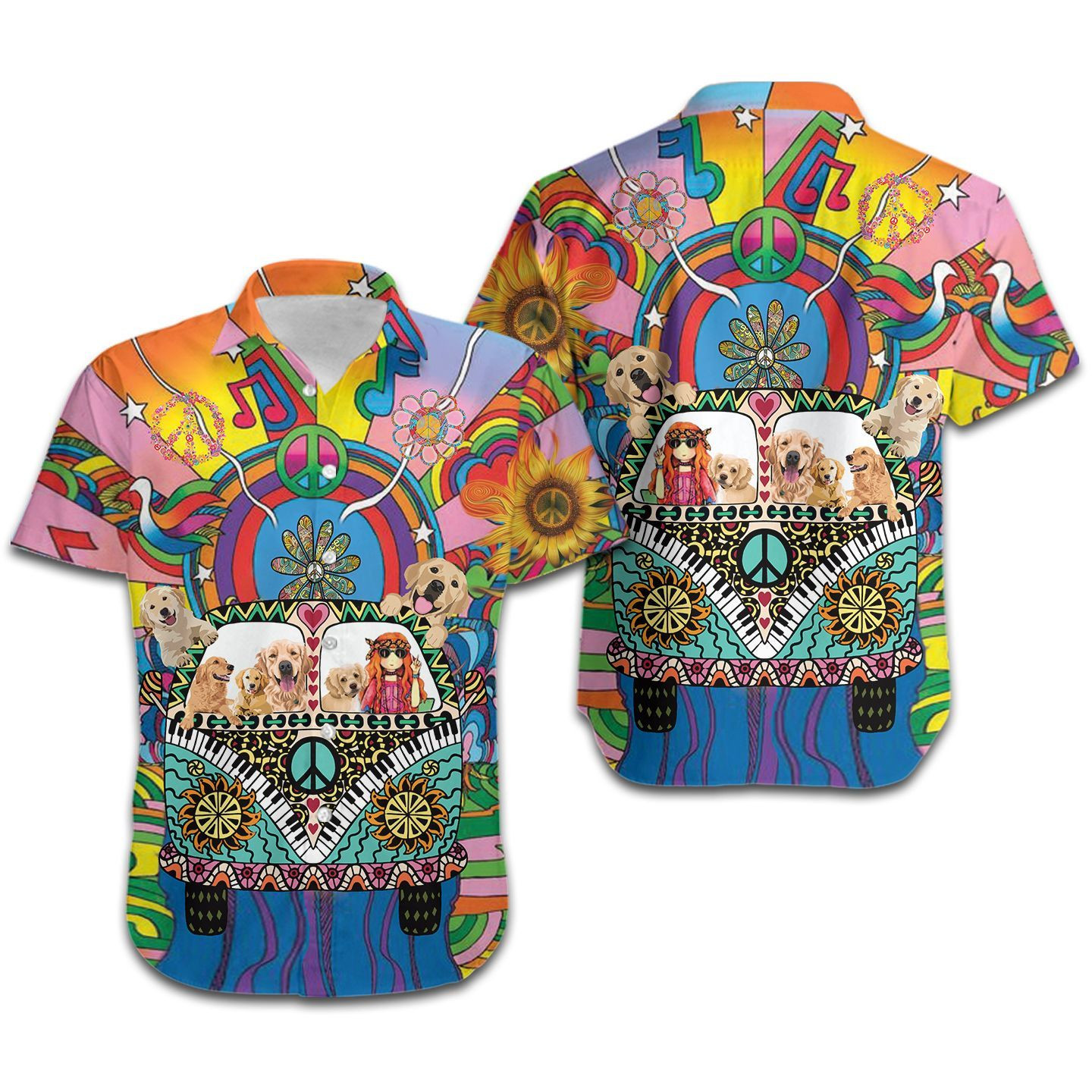 Golden Retriever Hippie Hawaiian Shirt For Women For Hippie Lovers – Gift For Golden Retriever Dog Lovers