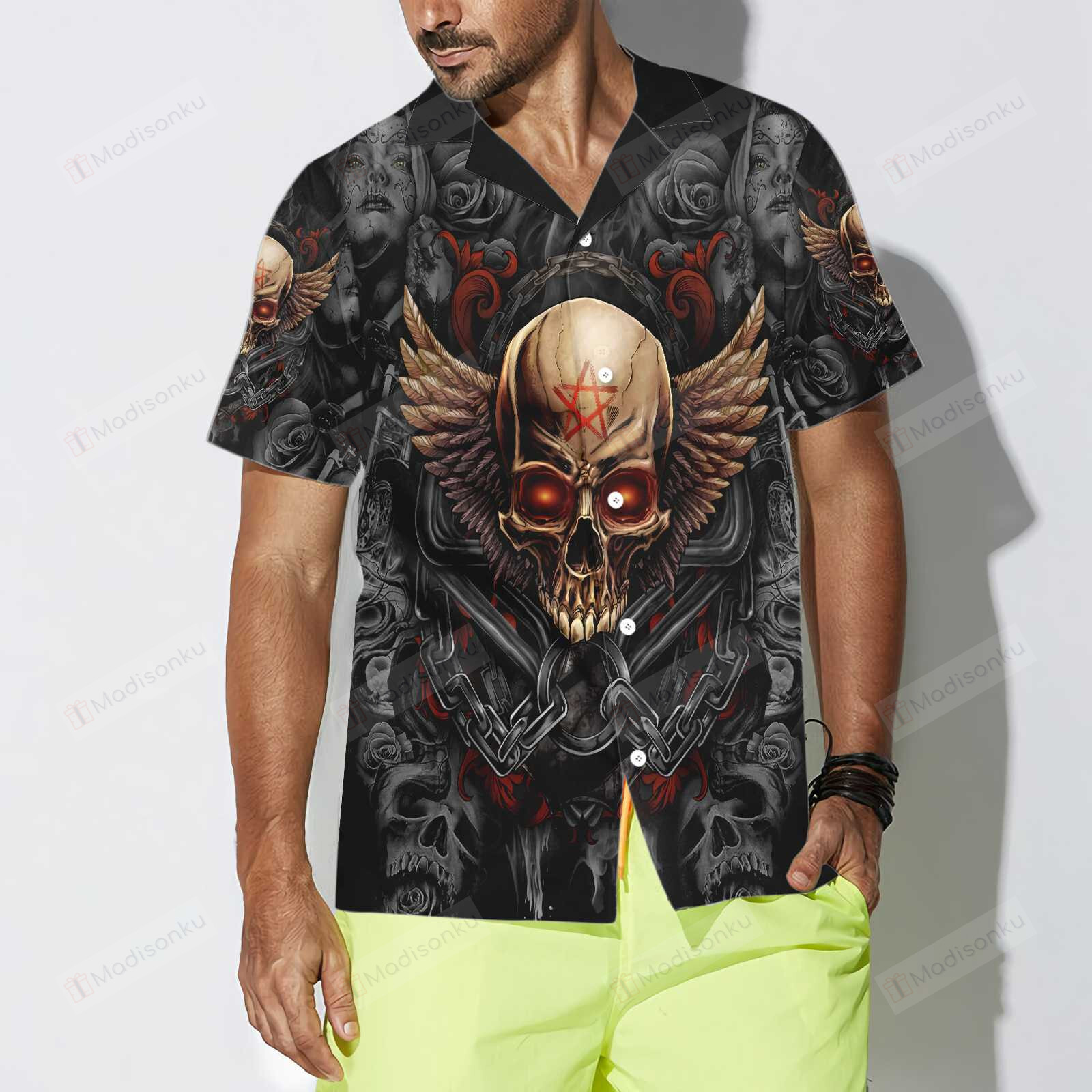 Gothic Skull Biker Hawaiian Shirt