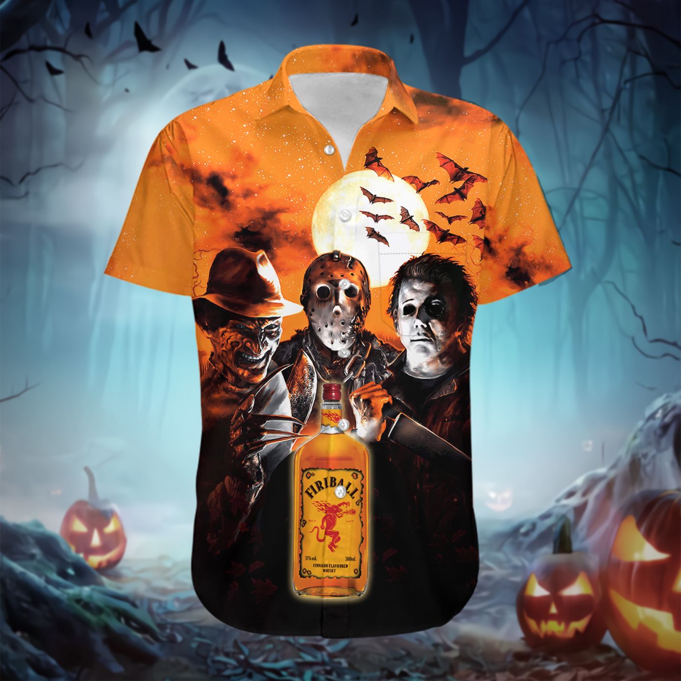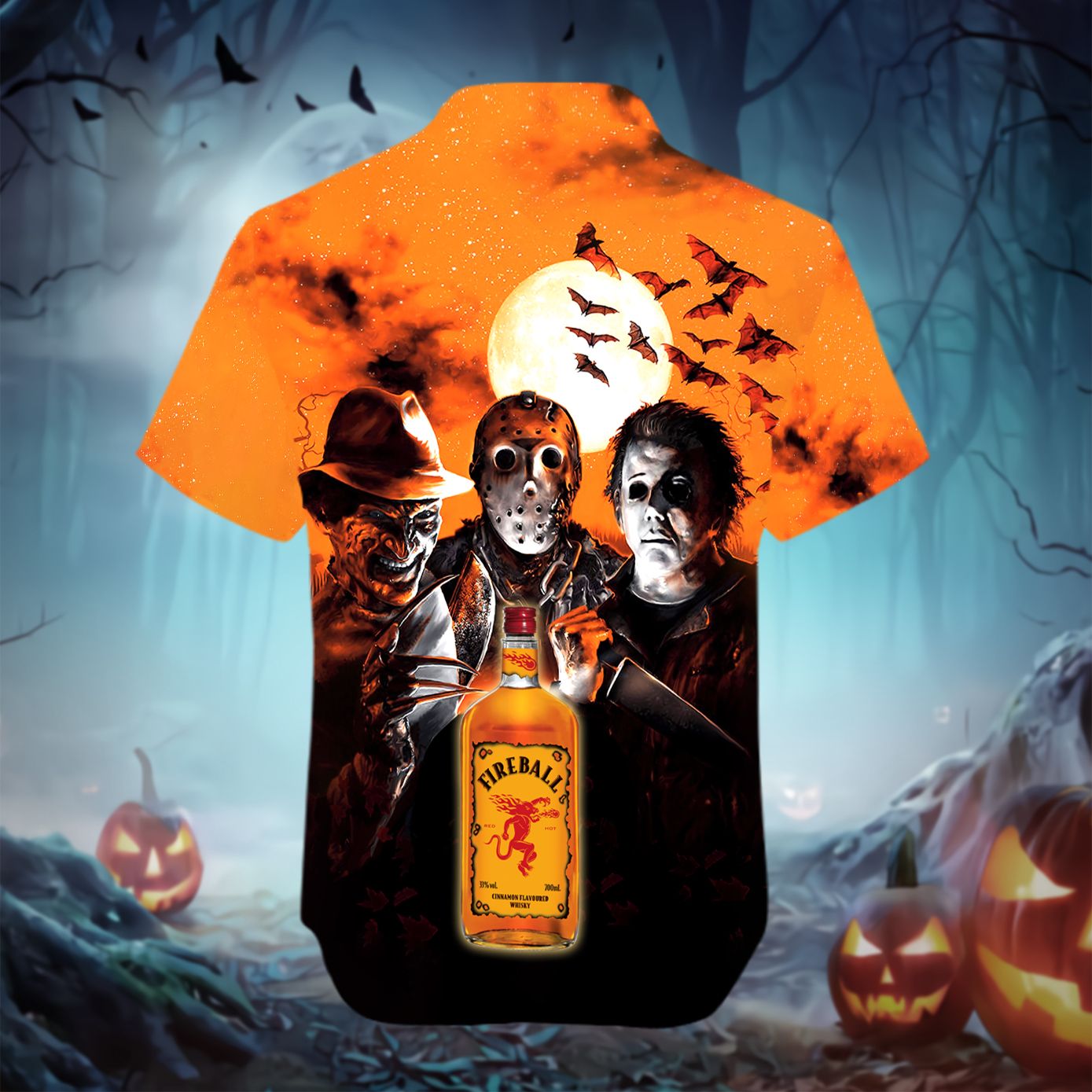 Halloween Fireball Whiskey Horror Characters 3D Hawaiian Shirt