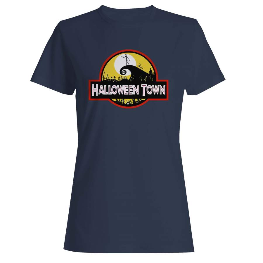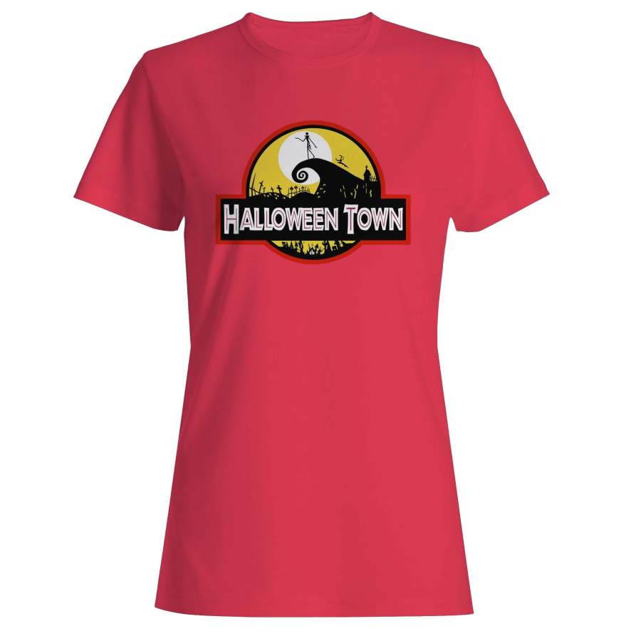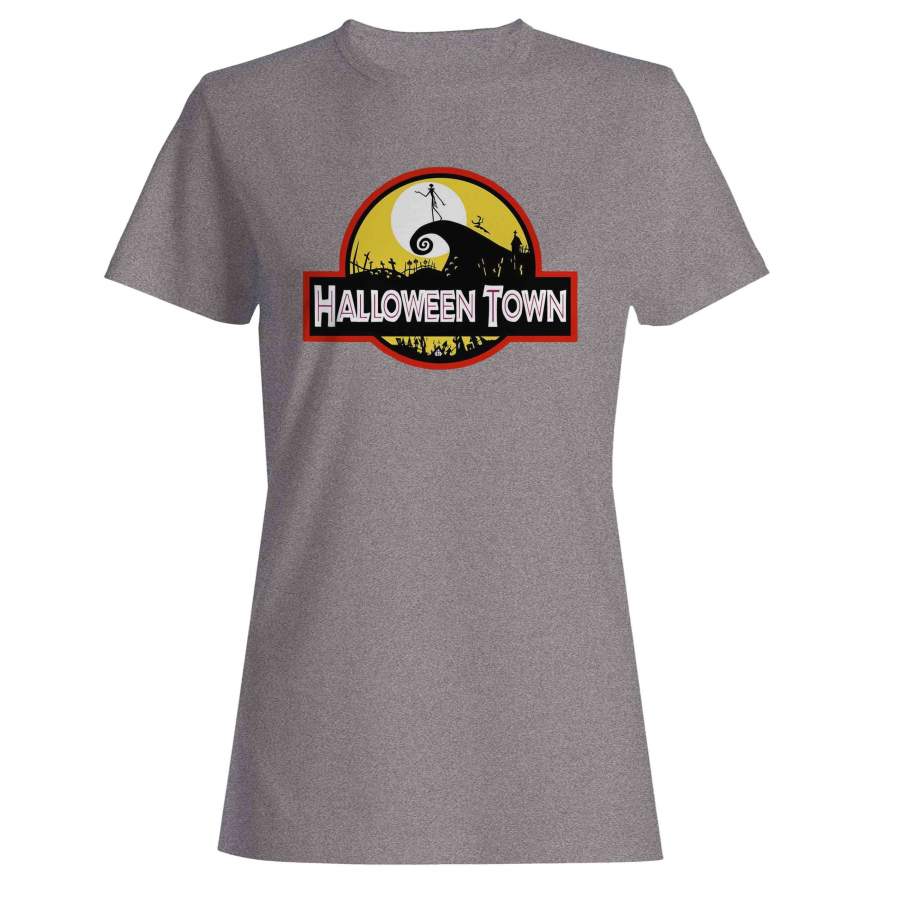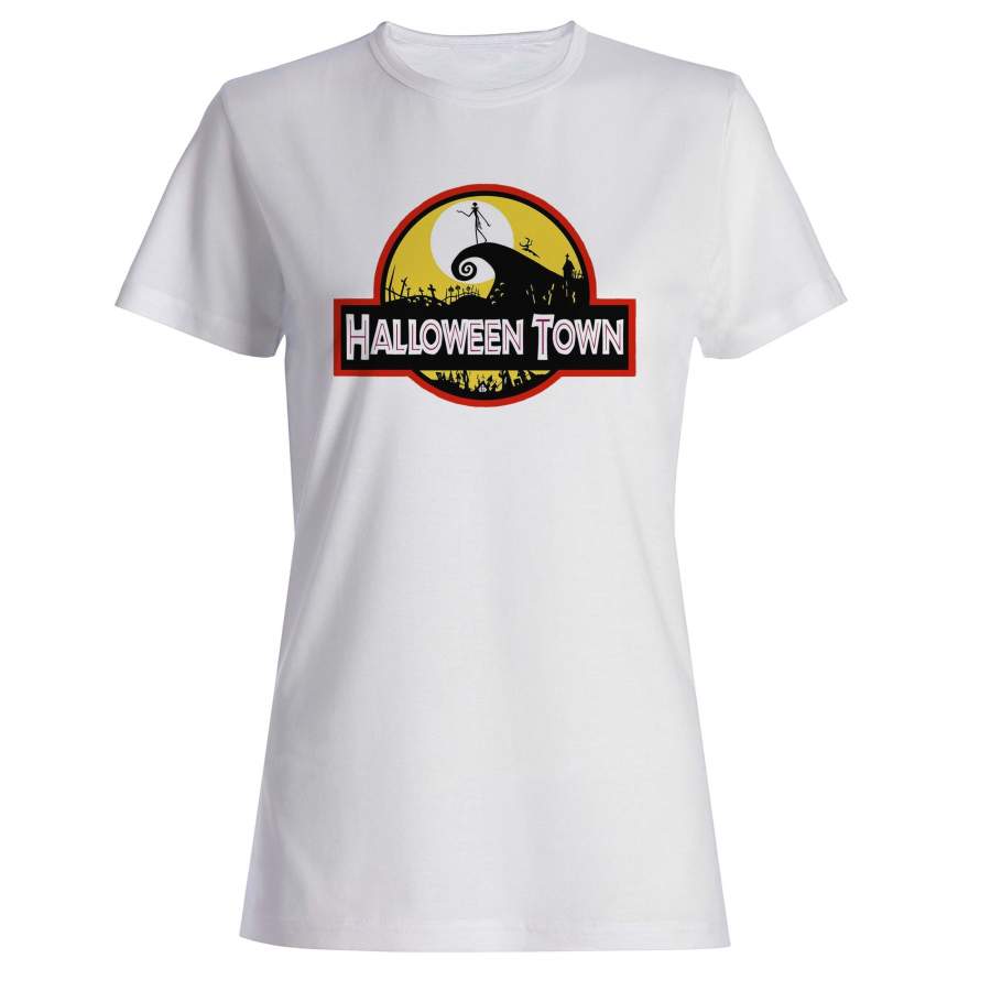 Halloween Town Nightmare Before Christmas Jurassic Park Logo Parodies Woman’s T-Shirt