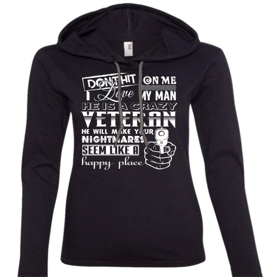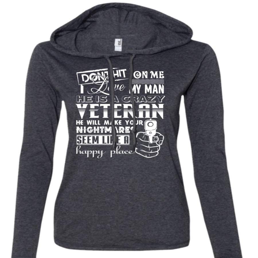 He Is A Crazy Veteran T Shirt, Nightmares Shirt (Anvil Ladies Ringspun Hooded)