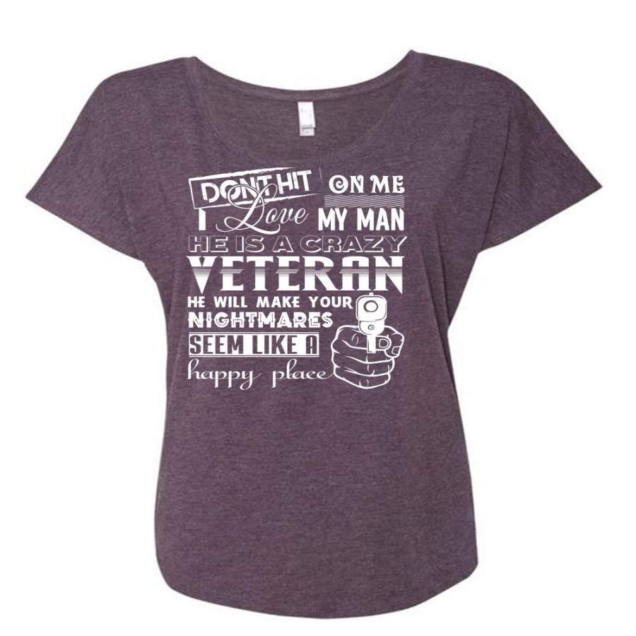 He Is A Crazy Veteran T Shirt, Nightmares Shirt (Ladies’ Triblend Dolman Sleeve)