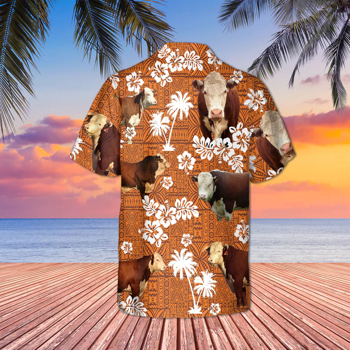 Hereford Cattle Red Tribal 3D Hawaiian Shirt