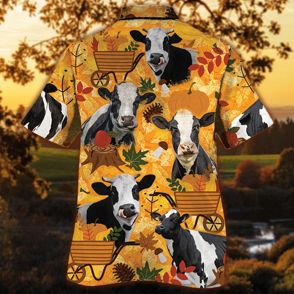Holstein Friesian Cattle Lovers Orange Nature 3D Hawaiian Shirt