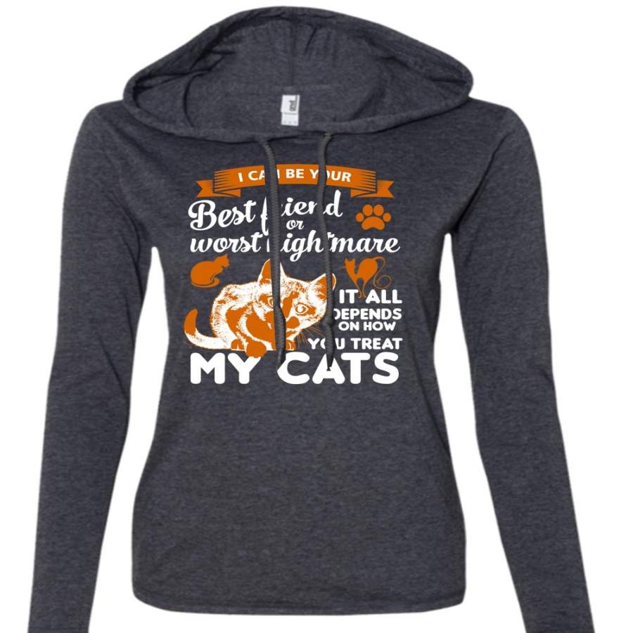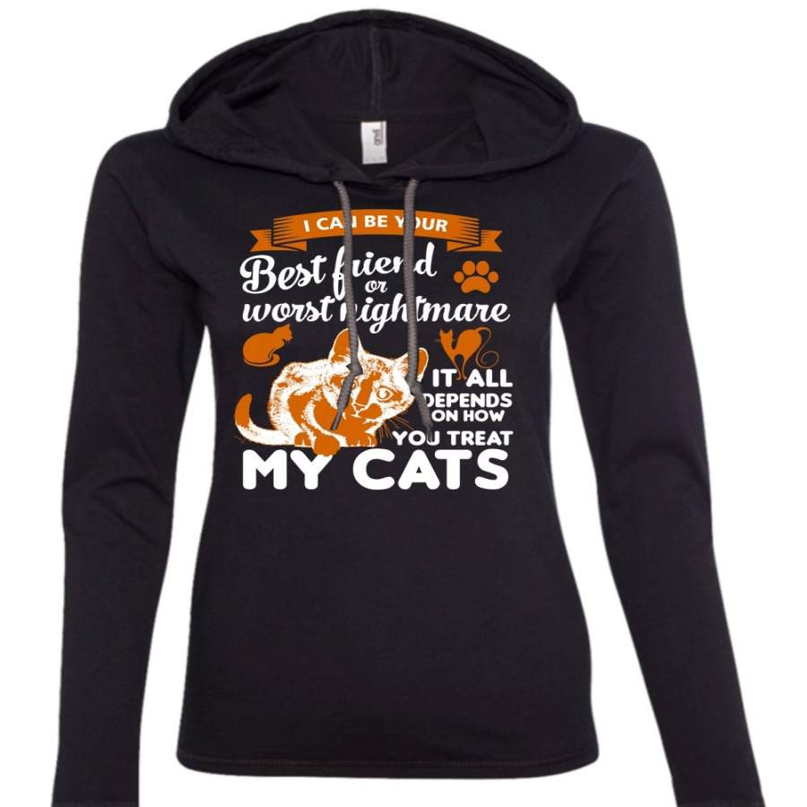 I Can Be Your Best Friend Or Worst Nightmare T Shirt, Depends On How You Treat My Cats T Shirt (Anvil Ladies Ringspun Hooded)