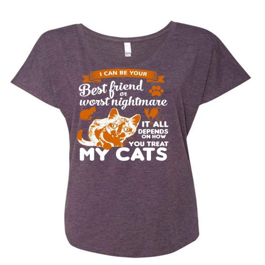 I Can Be Your Best Friend Or Worst Nightmare T Shirt, Depends On How You Treat My Cats T Shirt (Ladies’ Triblend Dolman Sleeve)