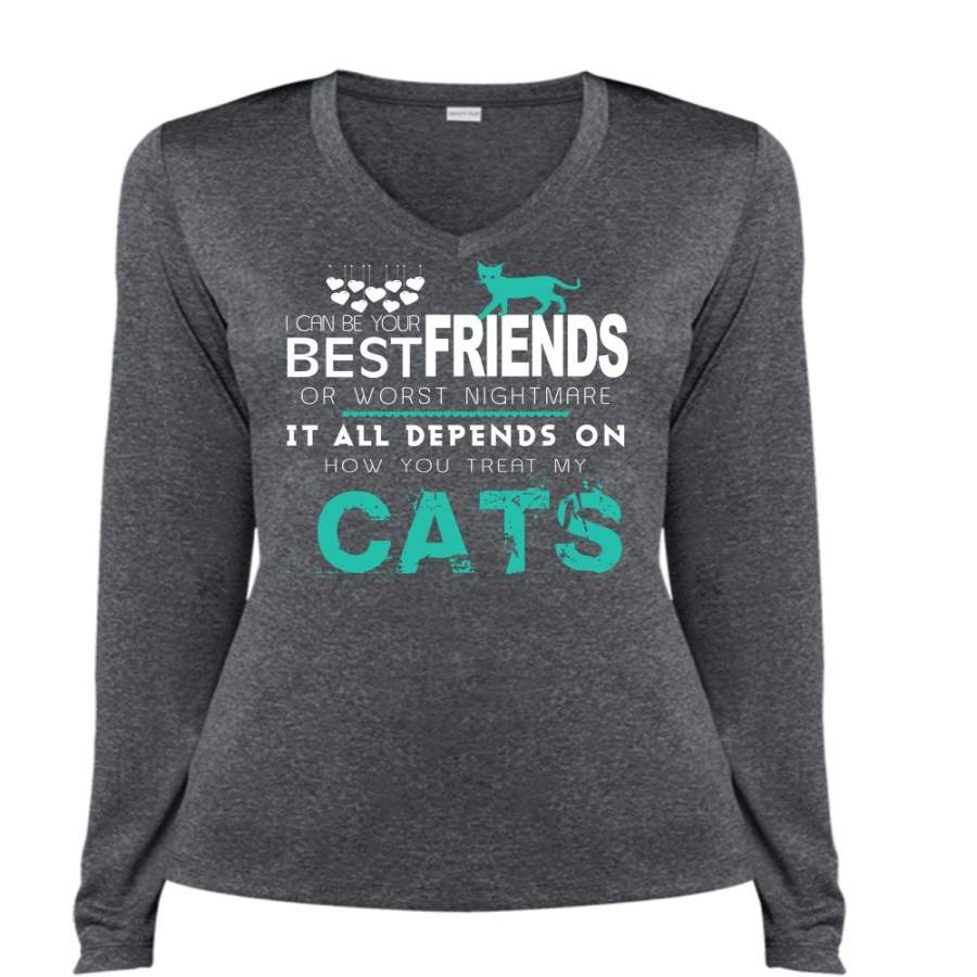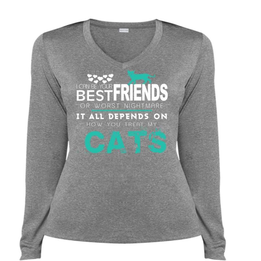 I Can Be Your Best Friends Or Worst Nightmare T Shirt, My Pets T Shirt (Ladies LS Heather V-Neck)