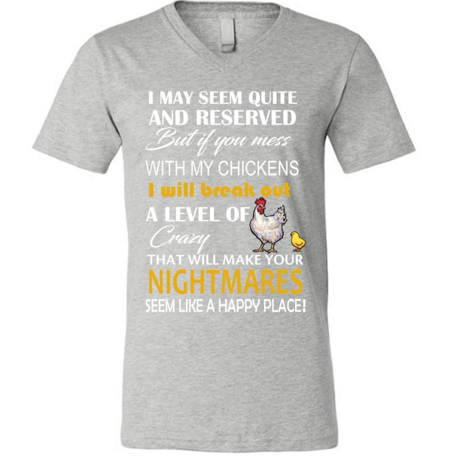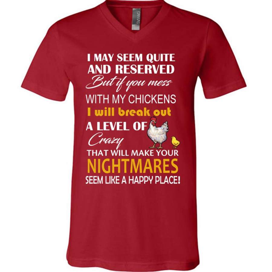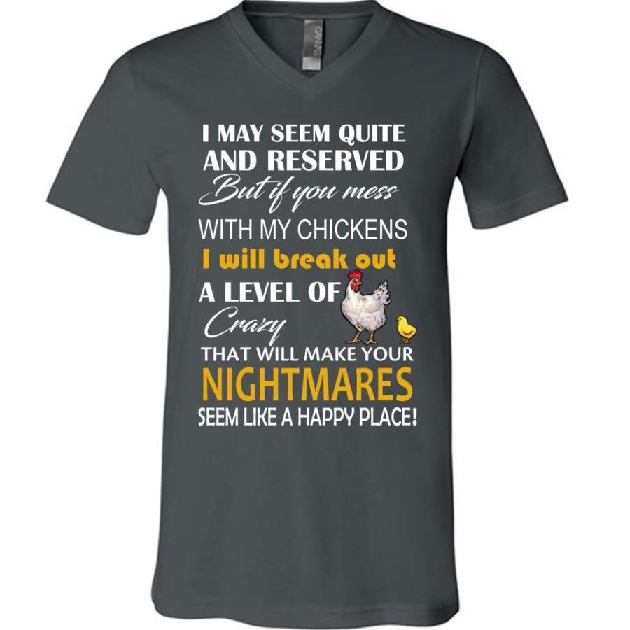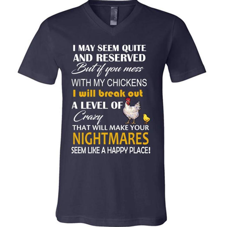 I May Seem Quiet And Reserved But If You Mess With My Chickens I Will Break Out A Level Of Crazy That Will Make Your Nightmares Seem Like A Happy Place – Canvas Unisex V-Neck Shirt
