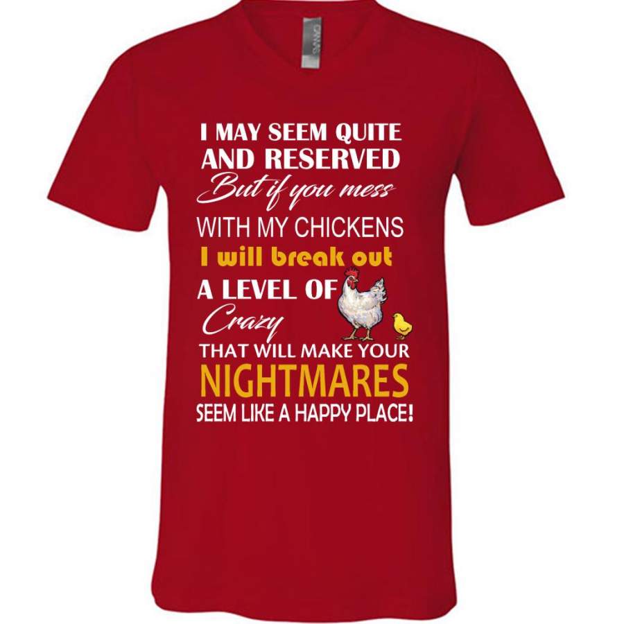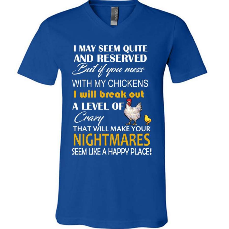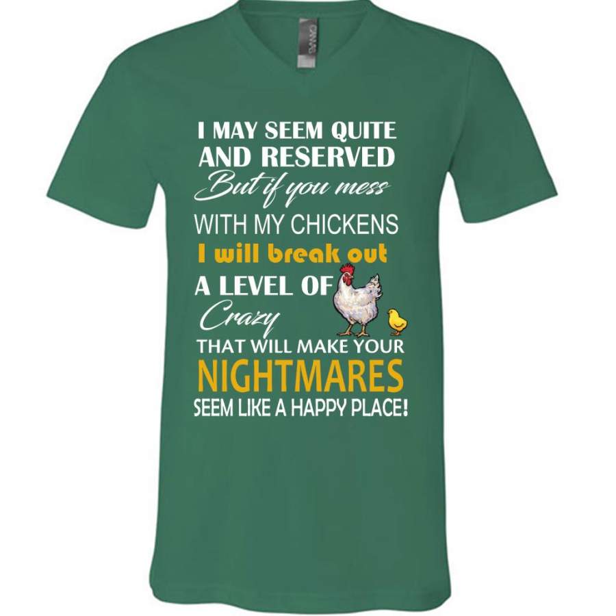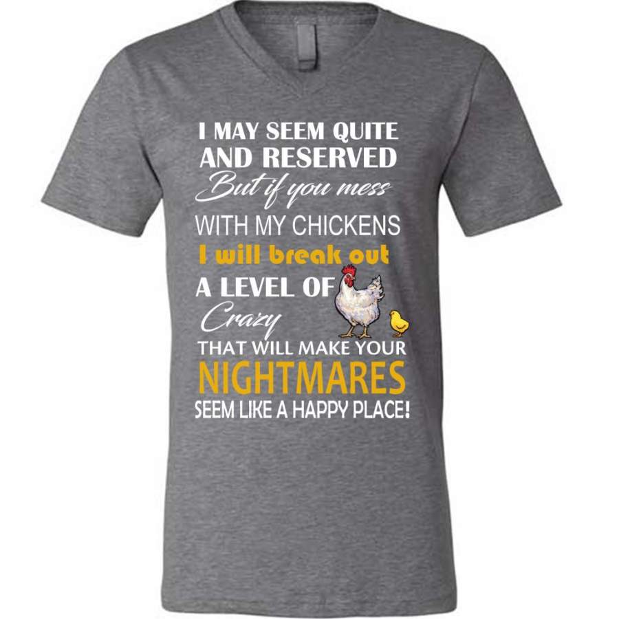 I May Seem Quiet And Reserved But If You Mess With My Chickens I Will Break Out A Level Of Crazy That Will Make Your Nightmares Seem Like A Happy Place – Canvas Unisex V-Neck Shirt