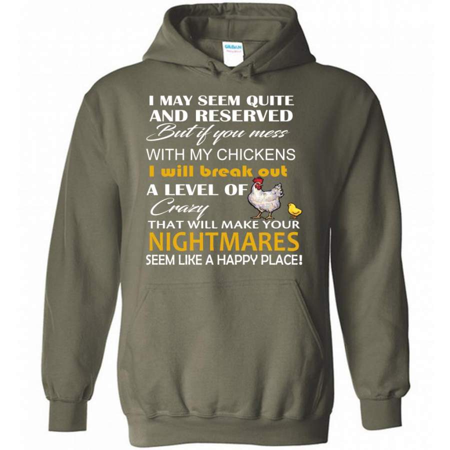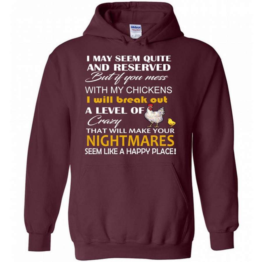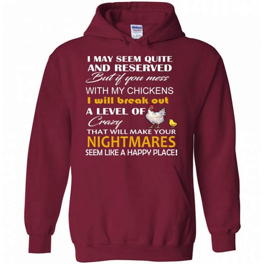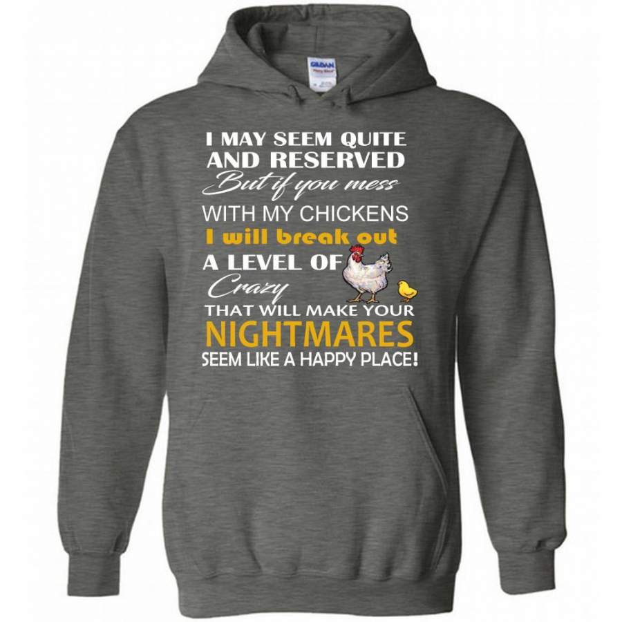 I May Seem Quiet And Reserved But If You Mess With My Chickens I Will Break Out A Level Of Crazy That Will Make Your Nightmares Seem Like A Happy Place – Gildan Heavy Blend Hoodie