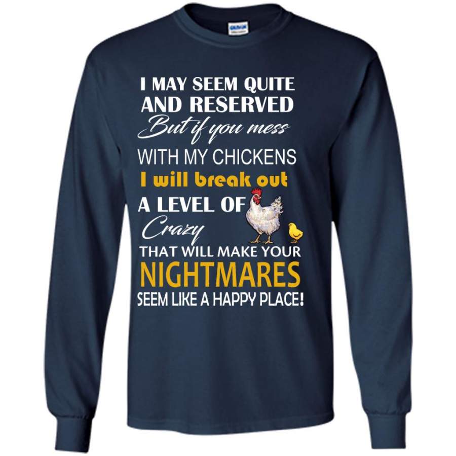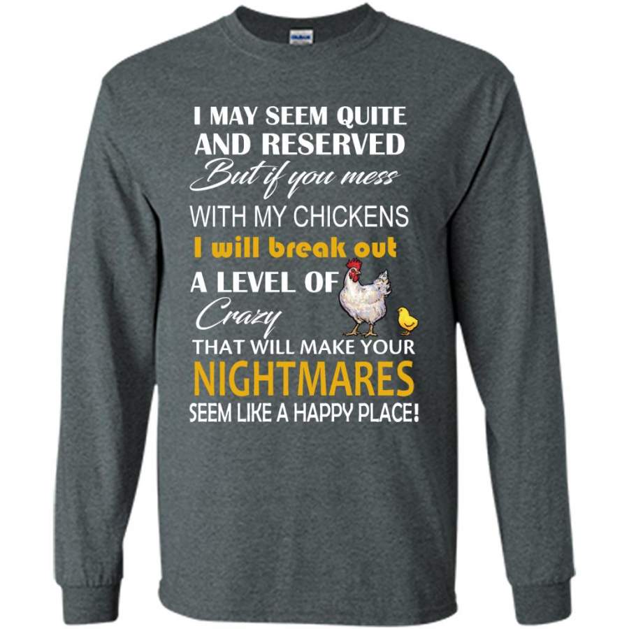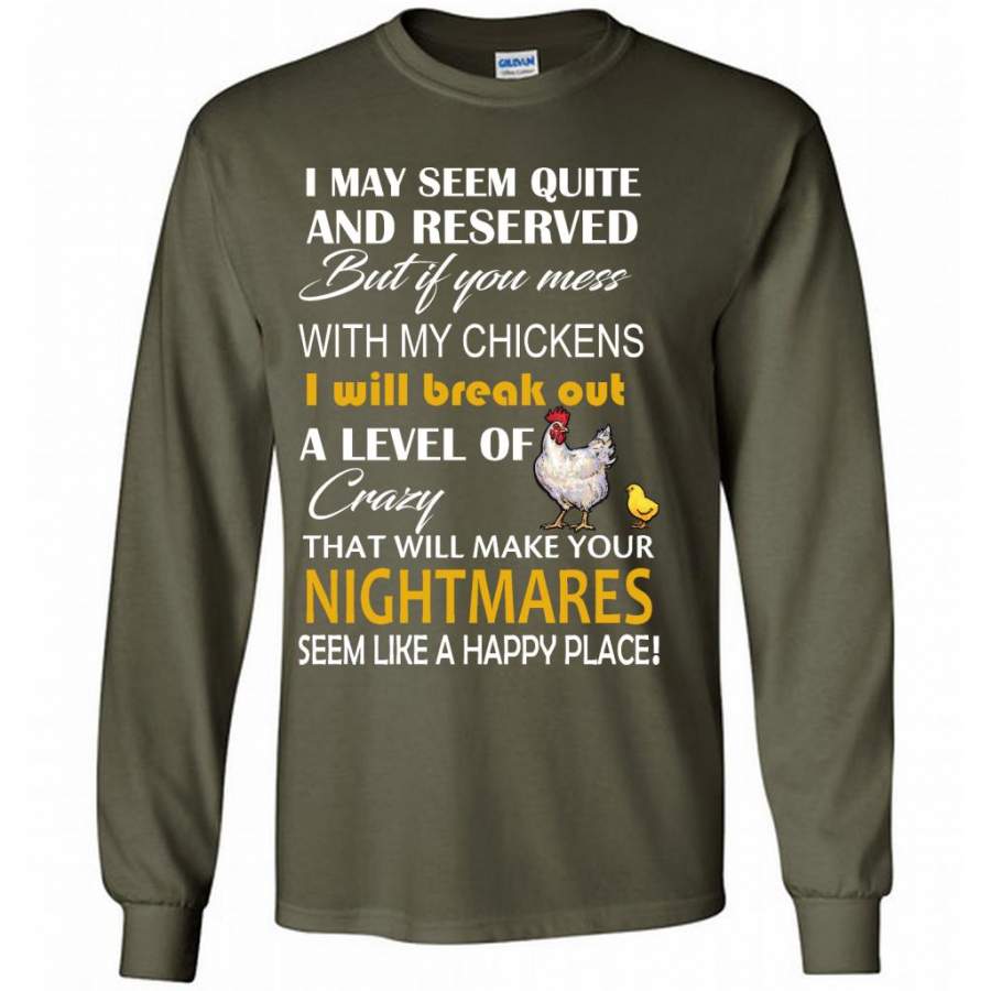 I May Seem Quiet And Reserved But If You Mess With My Chickens I Will Break Out A Level Of Crazy That Will Make Your Nightmares Seem Like A Happy Place – Gildan Long Sleeve Shirt