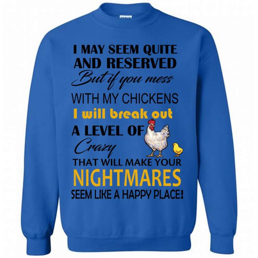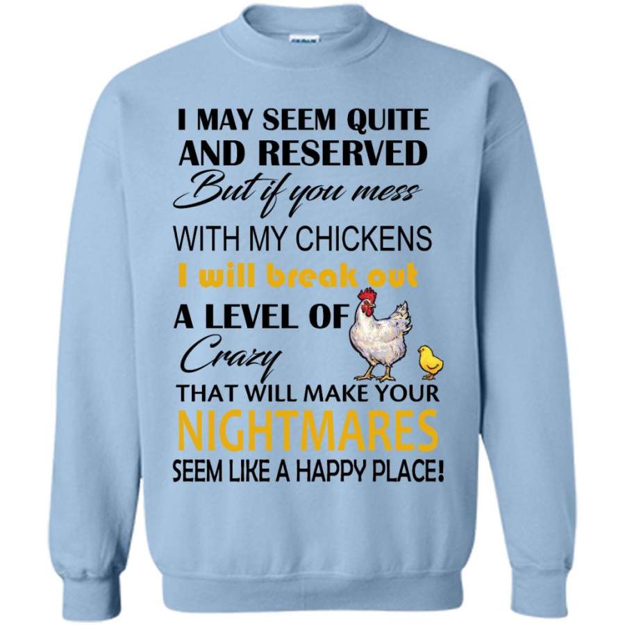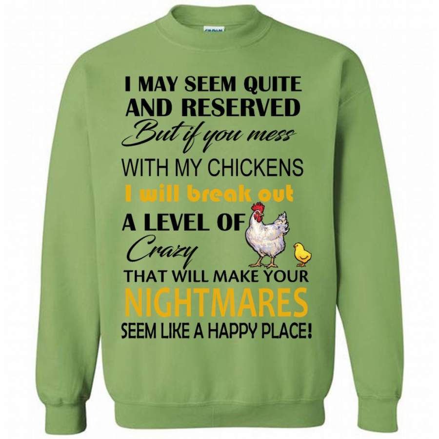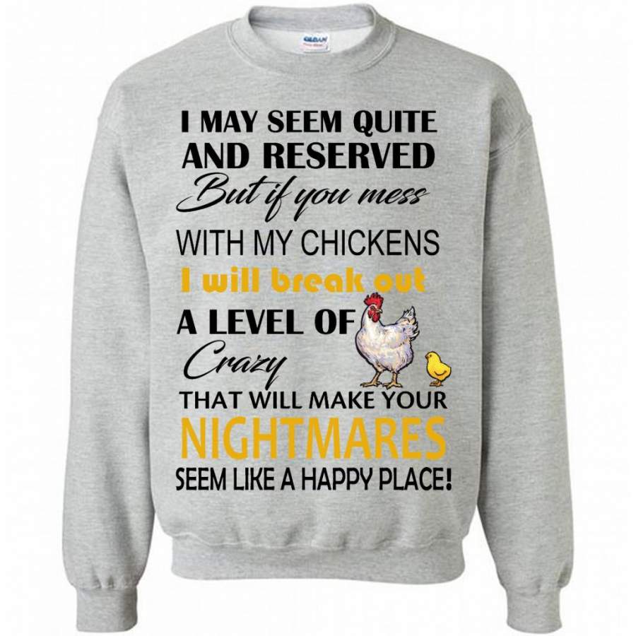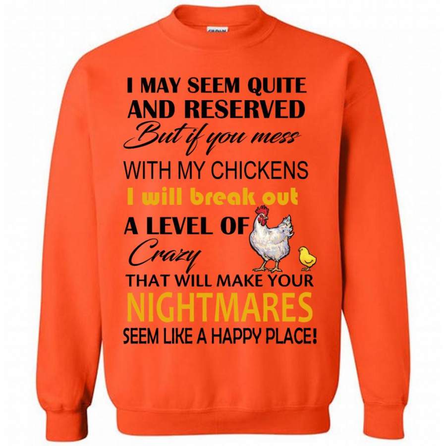I May Seem Quiet And Reserved But If You Mess With My Chickens I Will Break Out A Level Of Crazy That Will Make Your Nightmares Seem Like A Happy Place (w) – Gildan Crewneck Sweatshirt