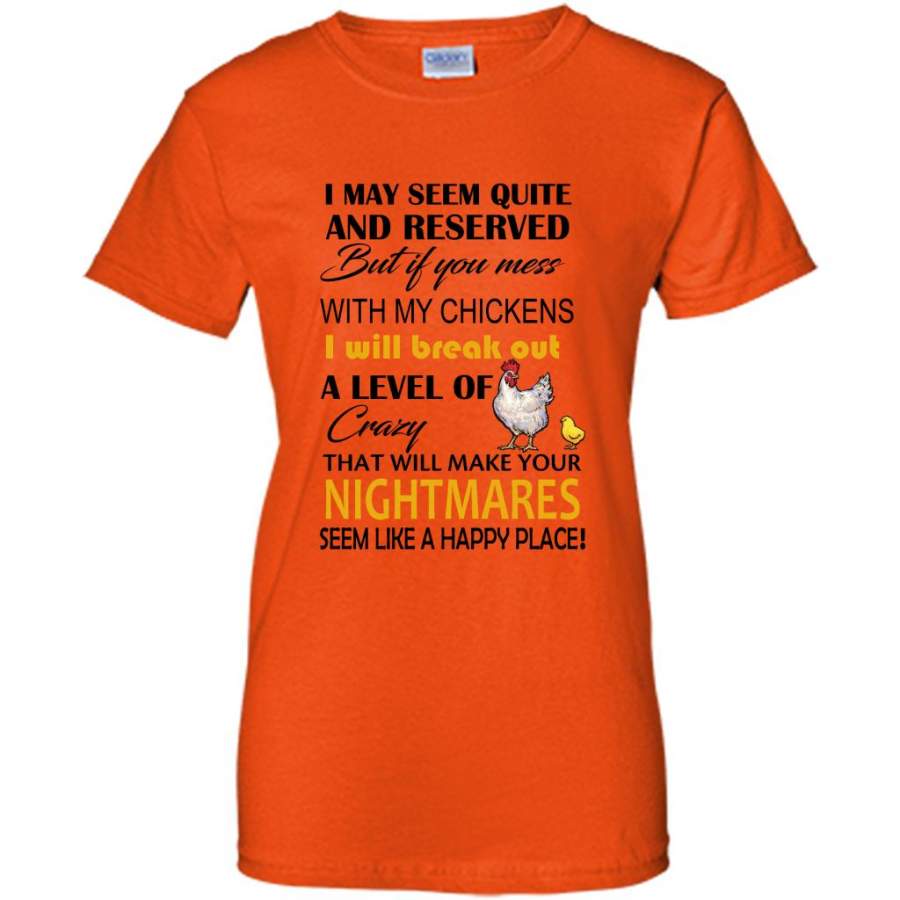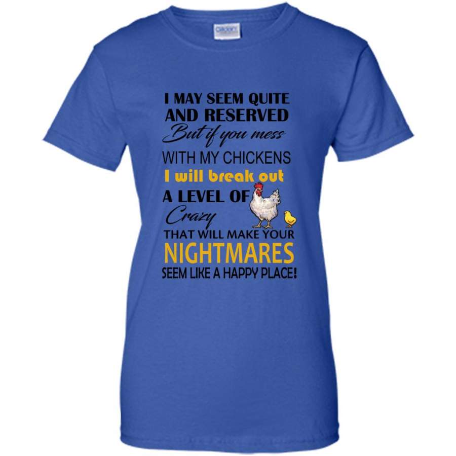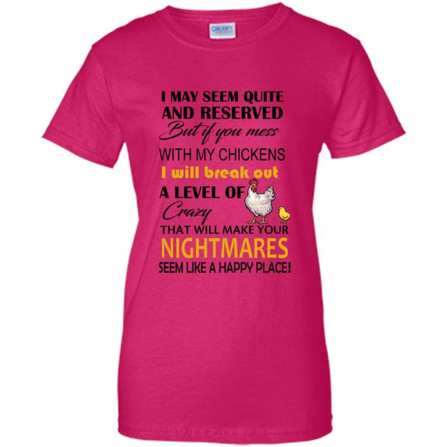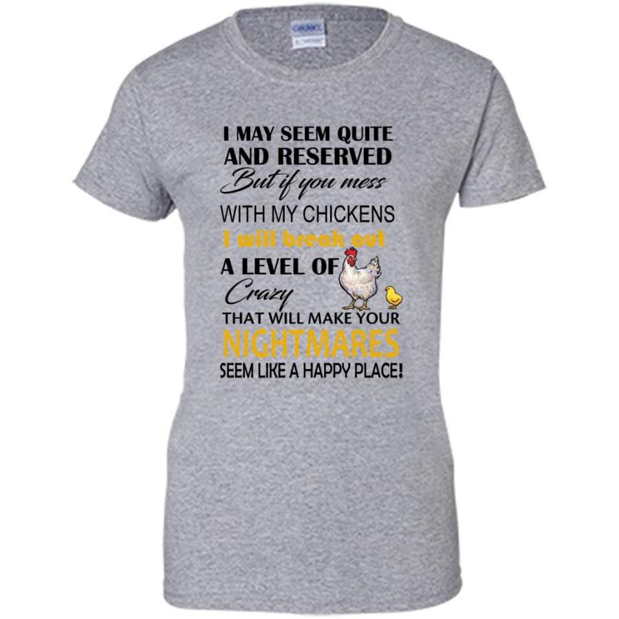 I May Seem Quiet And Reserved But If You Mess With My Chickens I Will Break Out A Level Of Crazy That Will Make Your Nightmares Seem Like A Happy Place (w) – Gildan Women Shirt
