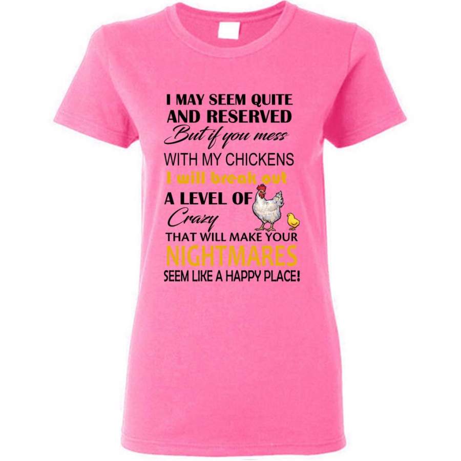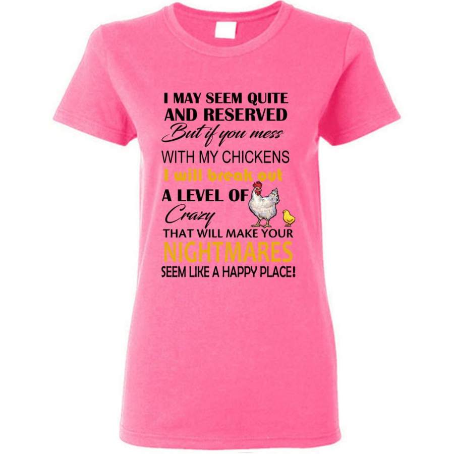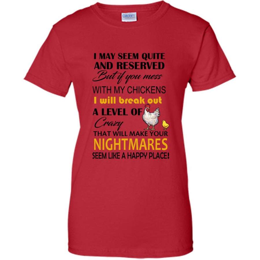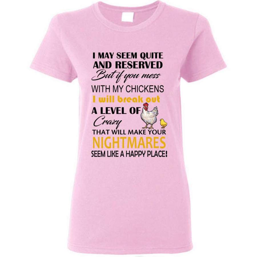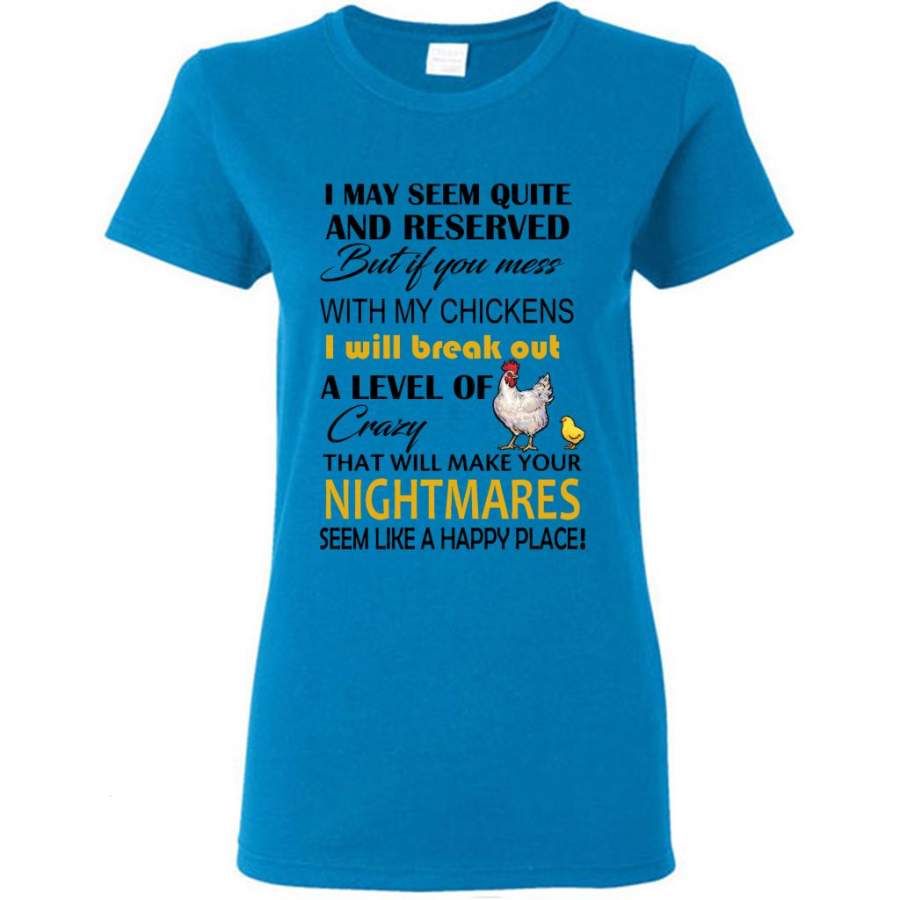 I May Seem Quiet And Reserved But If You Mess With My Chickens I Will Break Out A Level Of Crazy That Will Make Your Nightmares Seem Like A Happy Place (w) – Gildan Women Shirt