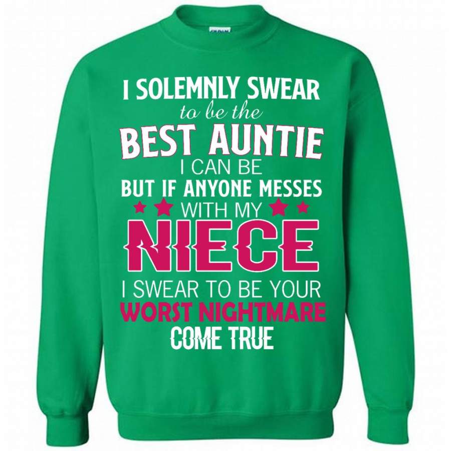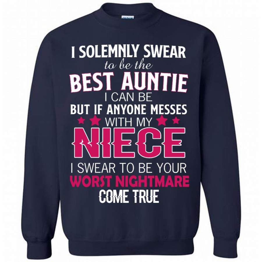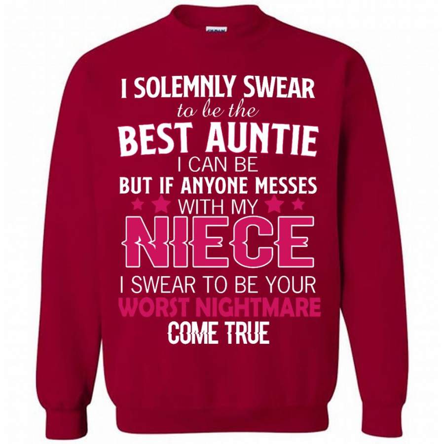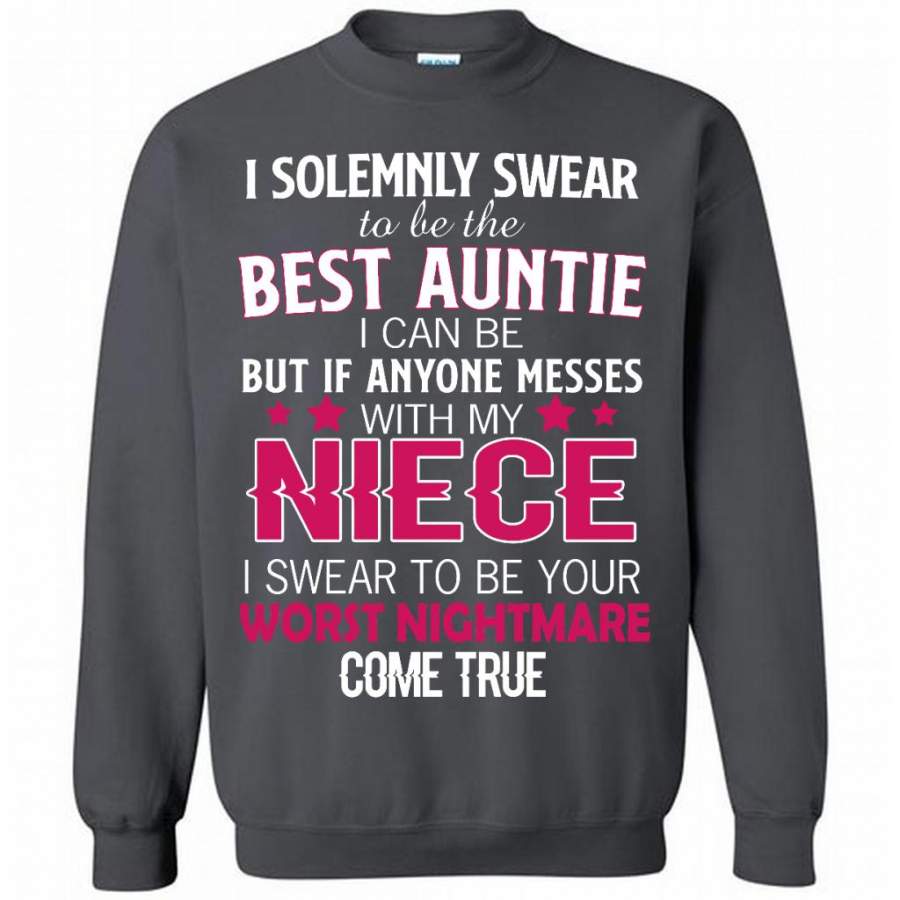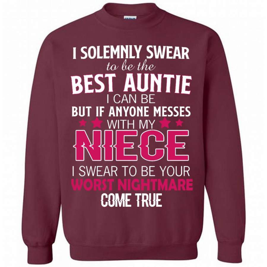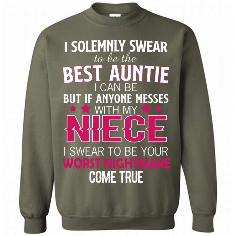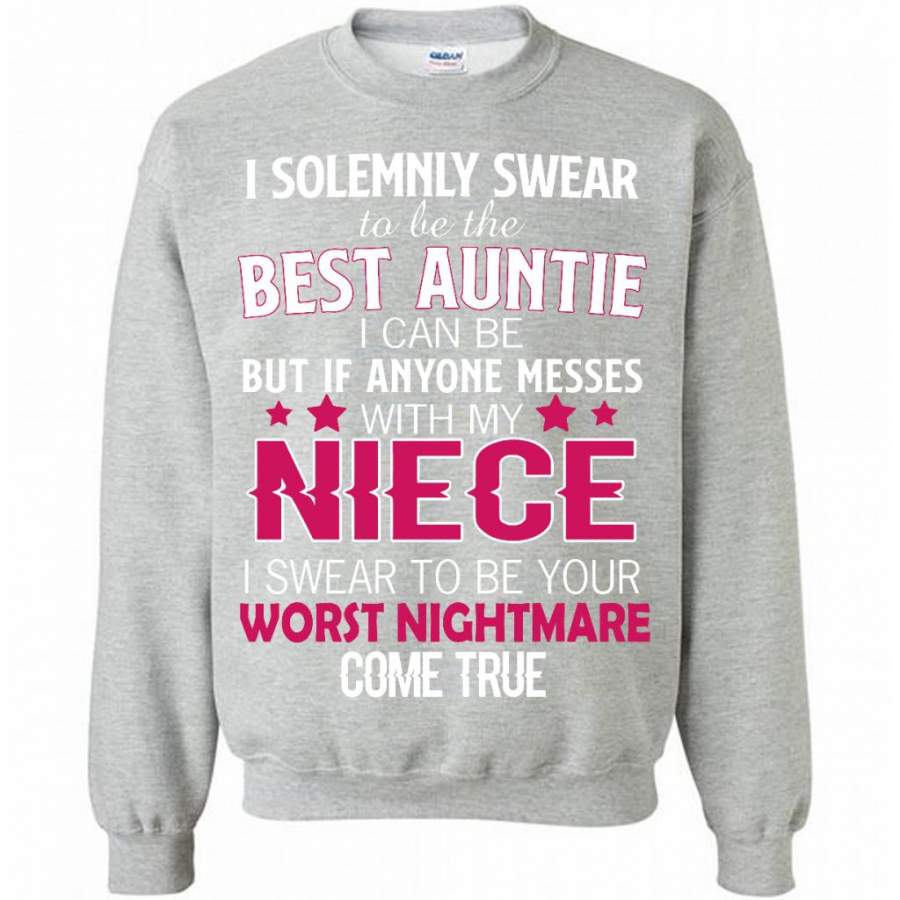I Solemnly Swear To Be The Best Auntie I Can Be But If Anyone Messes With My Niece I Swear To Be your Worst Nightmare Come True – Gildan Crewneck Sweatshirt