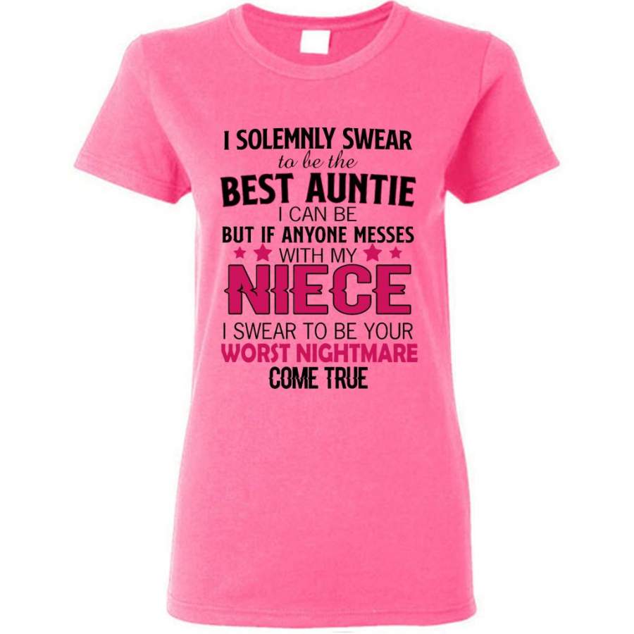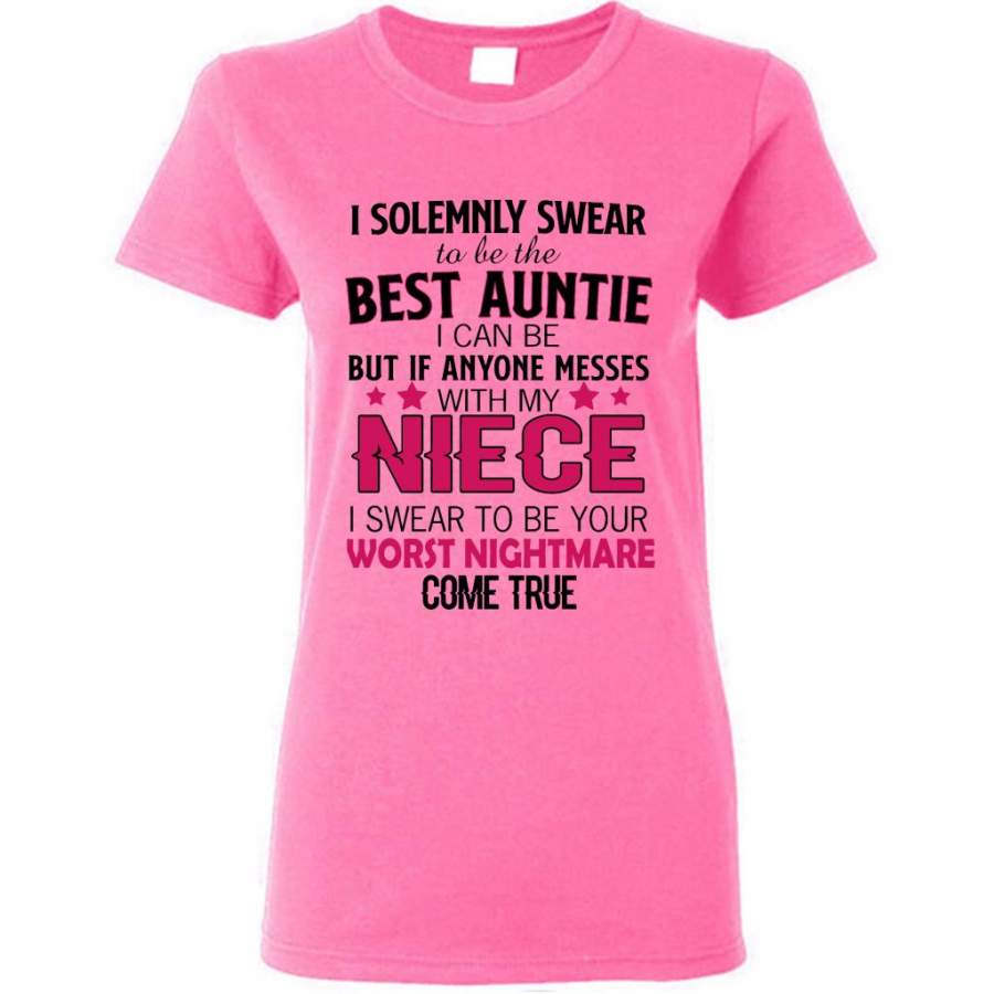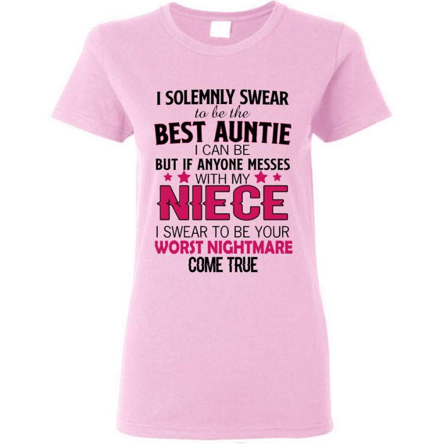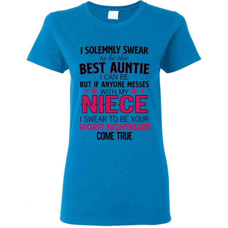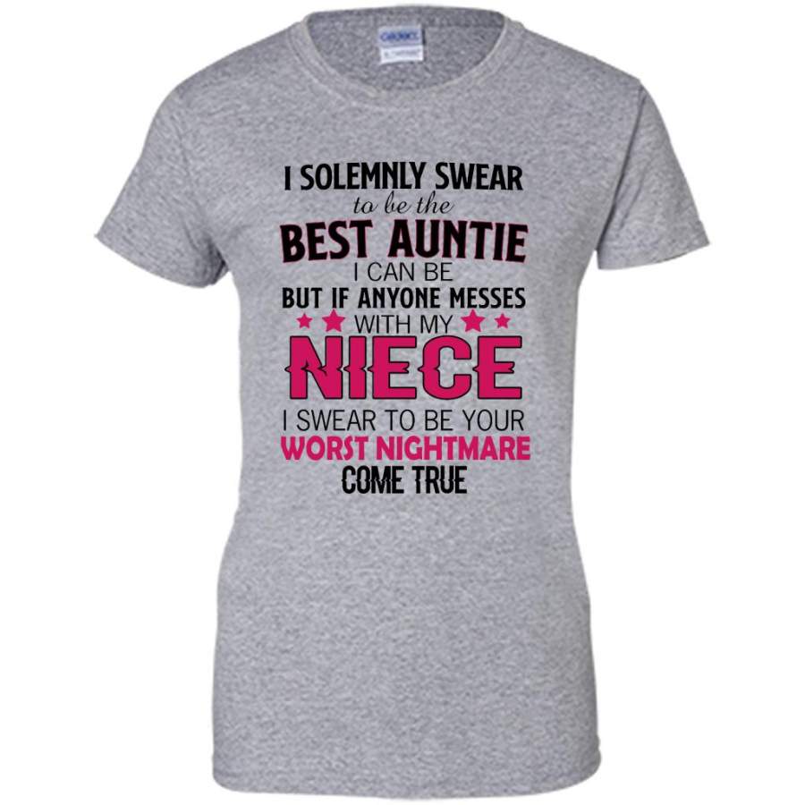 I Solemnly Swear To Be The Best Auntie I Can Be But If Anyone Messes With My Niece I Swear To Be your Worst Nightmare Come True (w) – Gildan Women Shirt