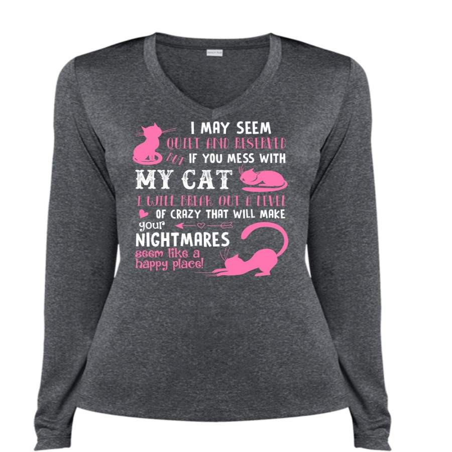 I Will Break Out A Level Of Crazy That Will Make Your Nightmares T Shirt, My Pets T Shirt (Ladies LS Heather V-Neck)