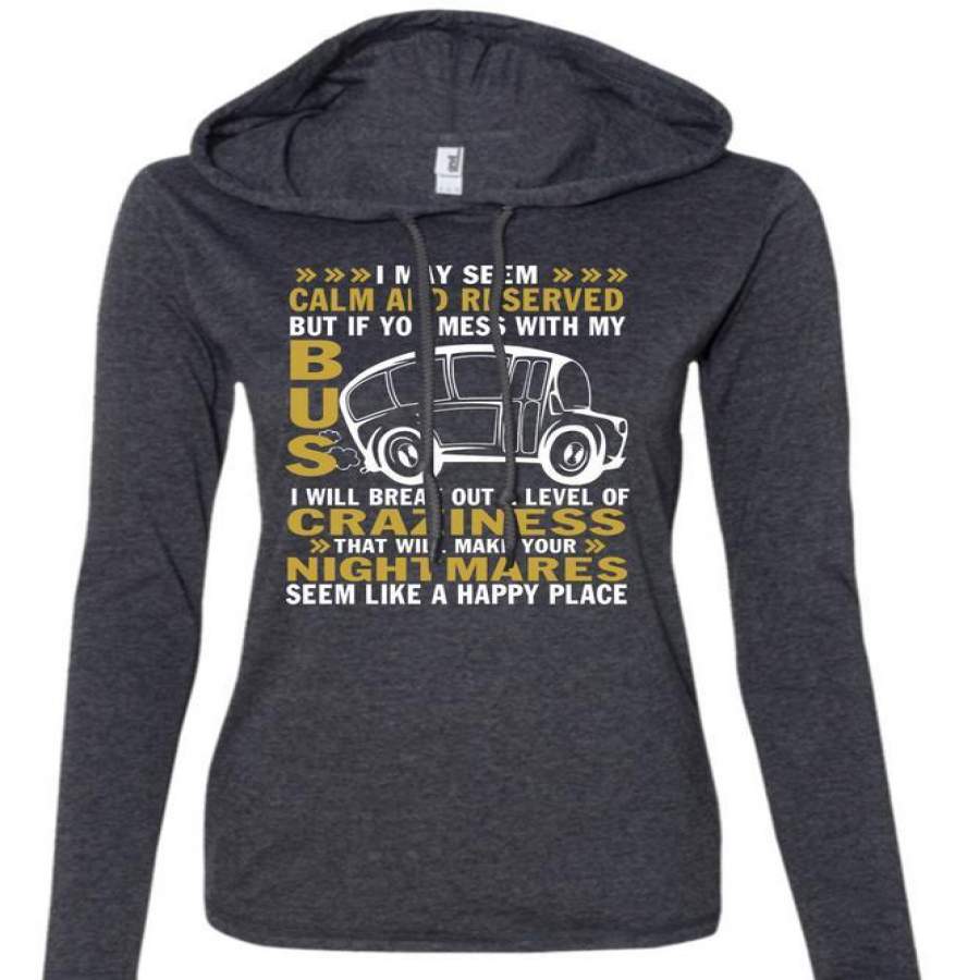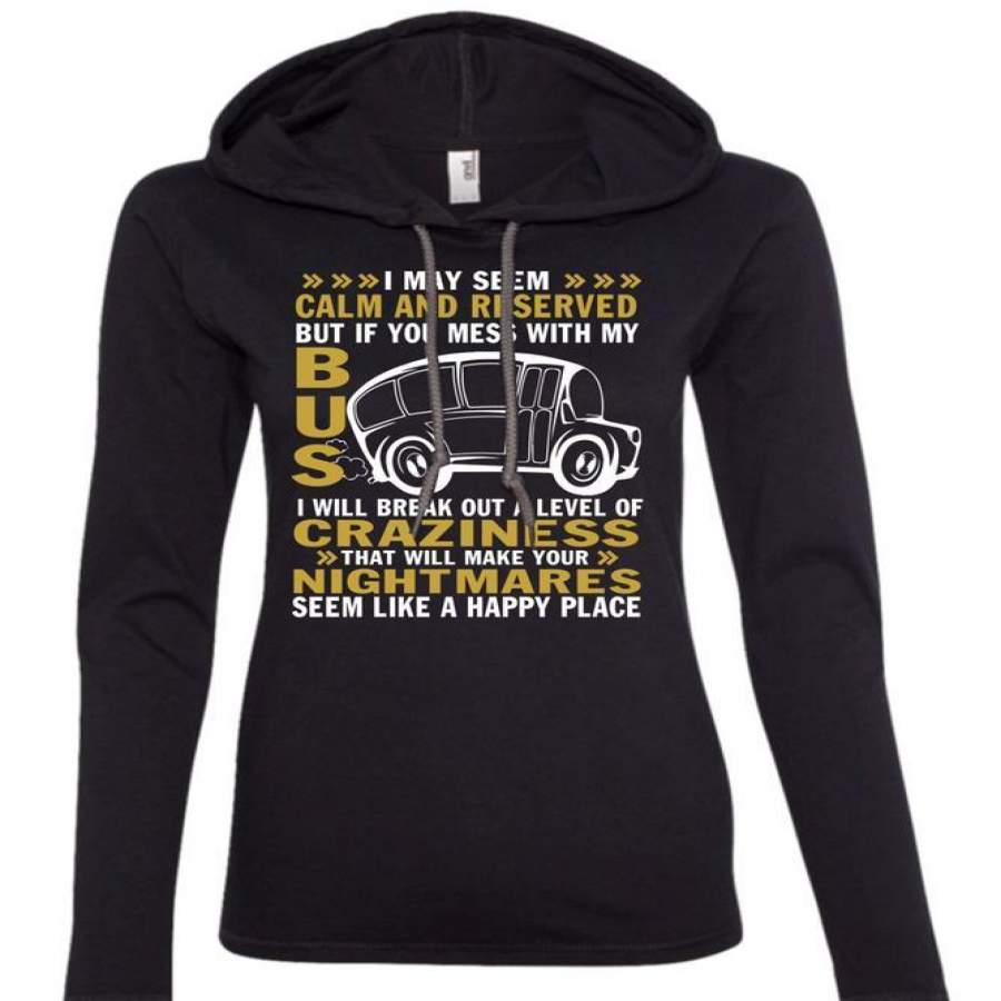 If You Mess With My Bus T Shirt, Will Make Your Nightmares T Shirt (Anvil Ladies Ringspun Hooded)