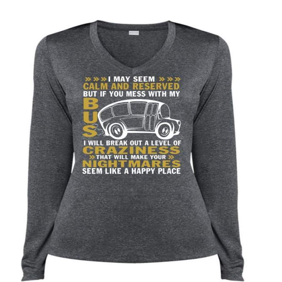 If You Mess With My Bus T Shirt, Will Make Your Nightmares T Shirt, Cool Shirt (Ladies LS Heather V-Neck)