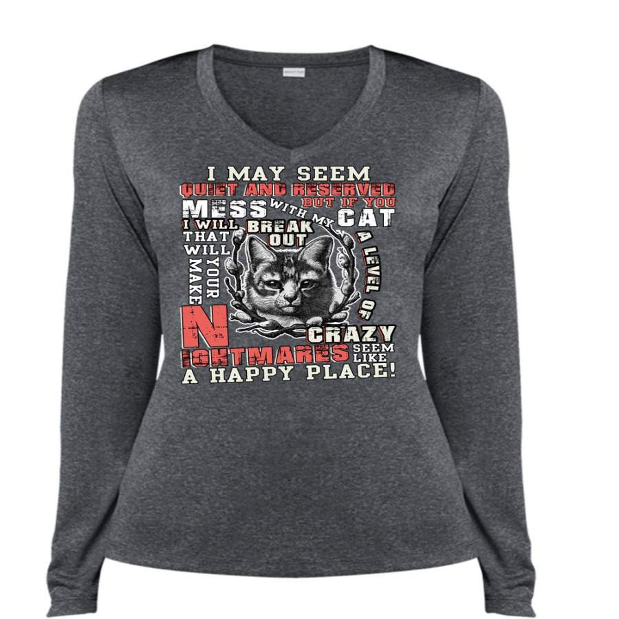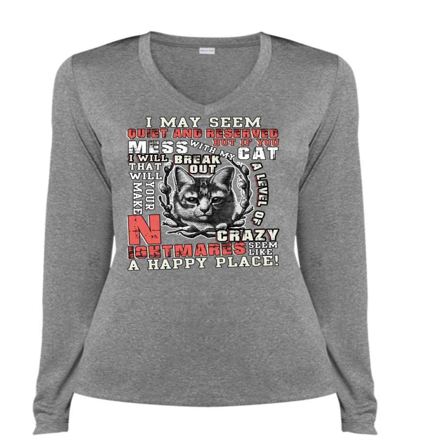If You Mess With My Cat T Shirt, Make Nightmares T Shirt, Cool Shirt (Ladies LS Heather V-Neck)