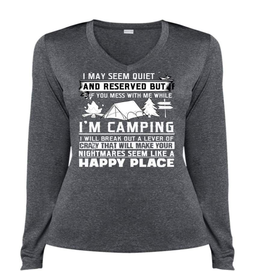 I’m Camping T Shirt, Make Your Nightmares T Shirt, Cool Shirt (Ladies LS Heather V-Neck)
