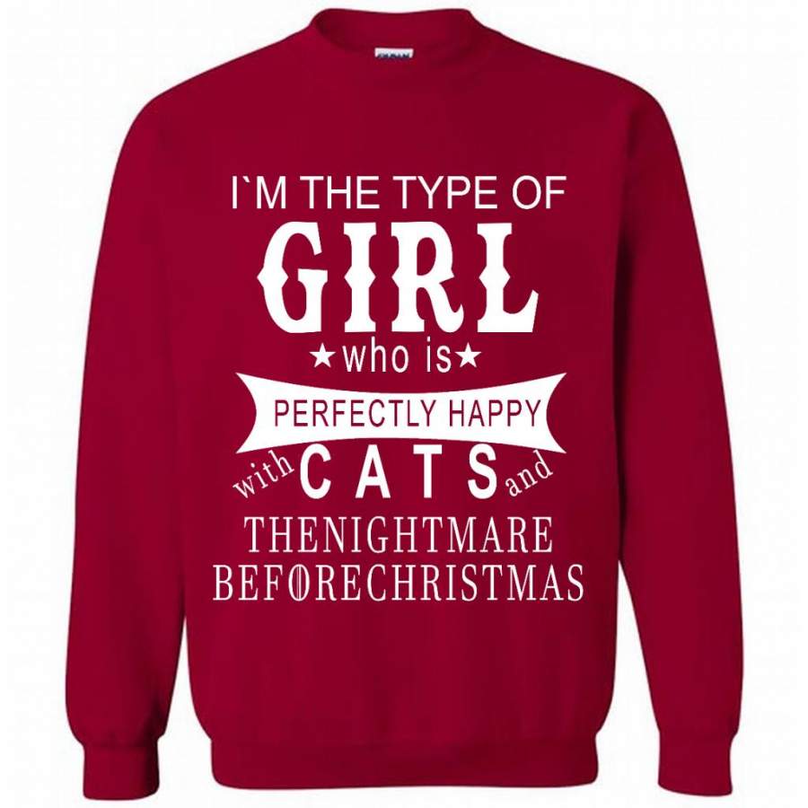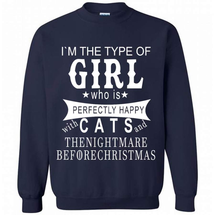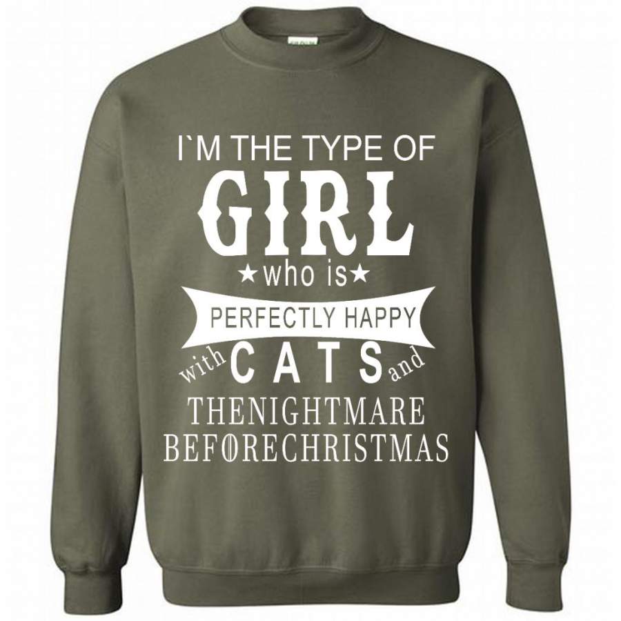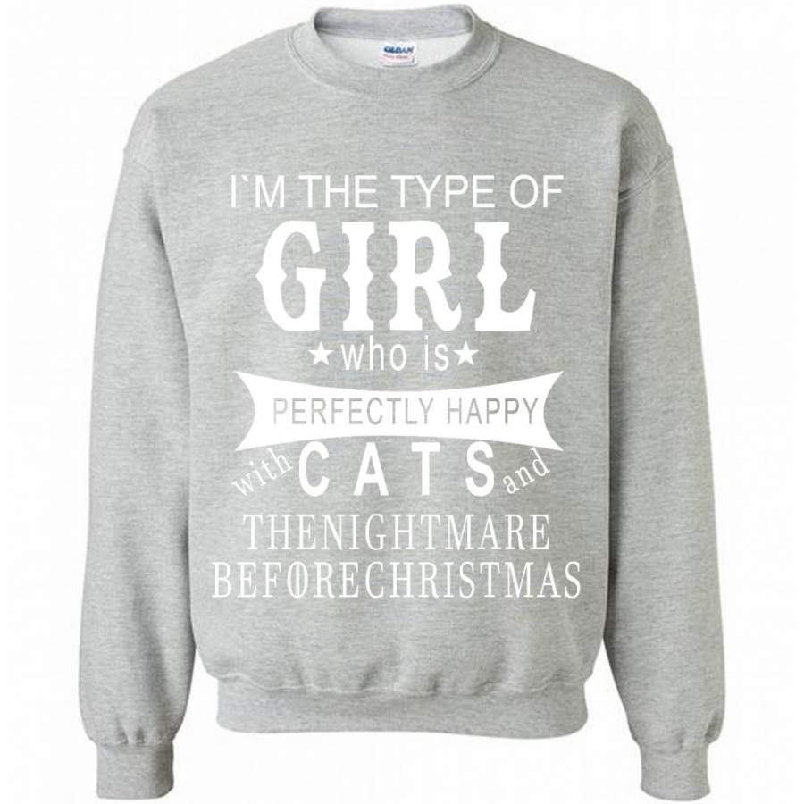 I’m The Type Of Girl Who Is Perfectly Happy With Cats And The Nightmare Before Christmas – Gildan Crewneck Sweatshirt