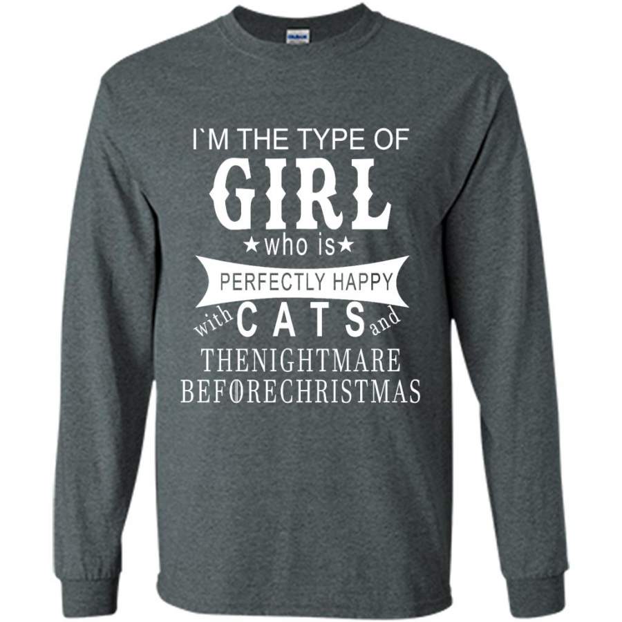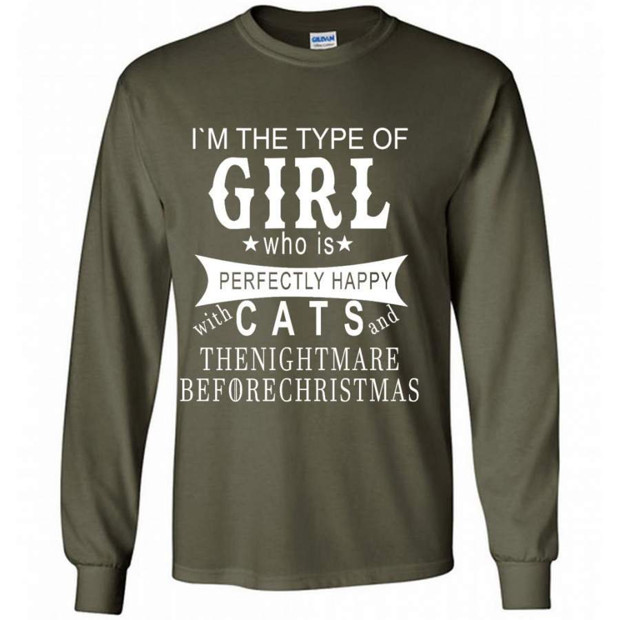 I’m The Type Of Girl Who Is Perfectly Happy With Cats And The Nightmare Before Christmas – Gildan Long Sleeve Shirt