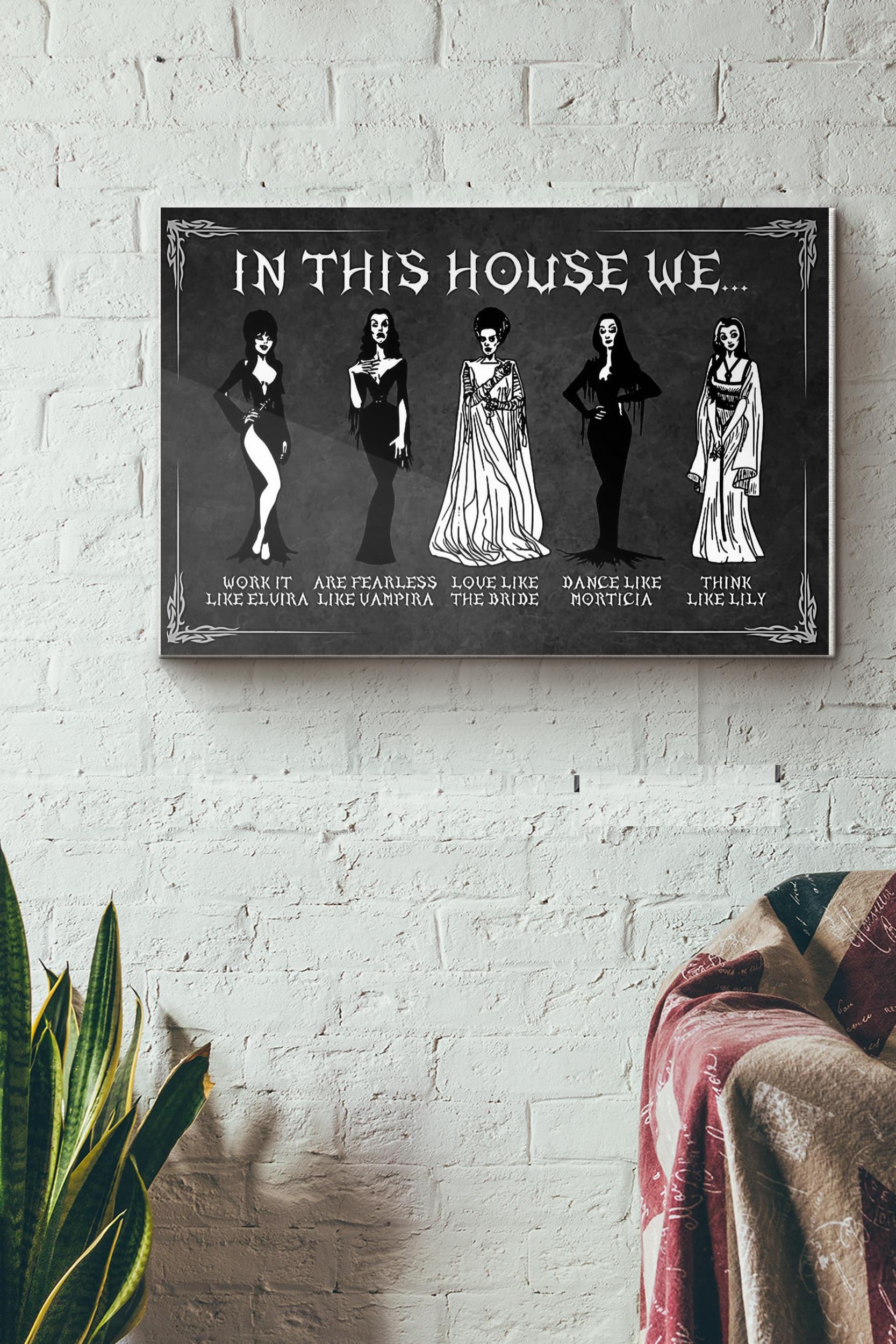 In This House Work It Like Eluira Are Fearless Like Vampire Love Like The Bride Dance Like Morticia Think Like Lily Poster Wrapped Canvas