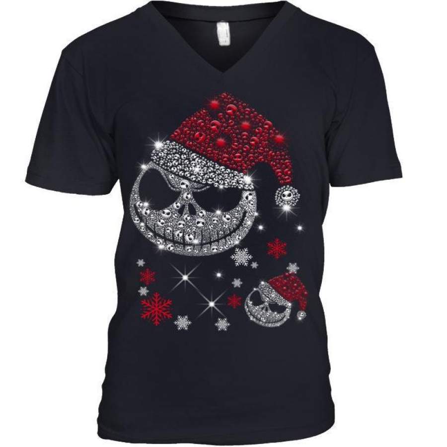 Jack Skellington Christmas Face Nightmare Before Christmas Guys V-Neck