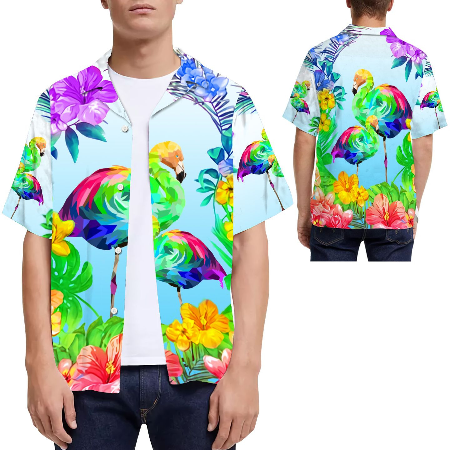 Lgbt Flamingo Tropical Floral Men Hawaiian Shirt