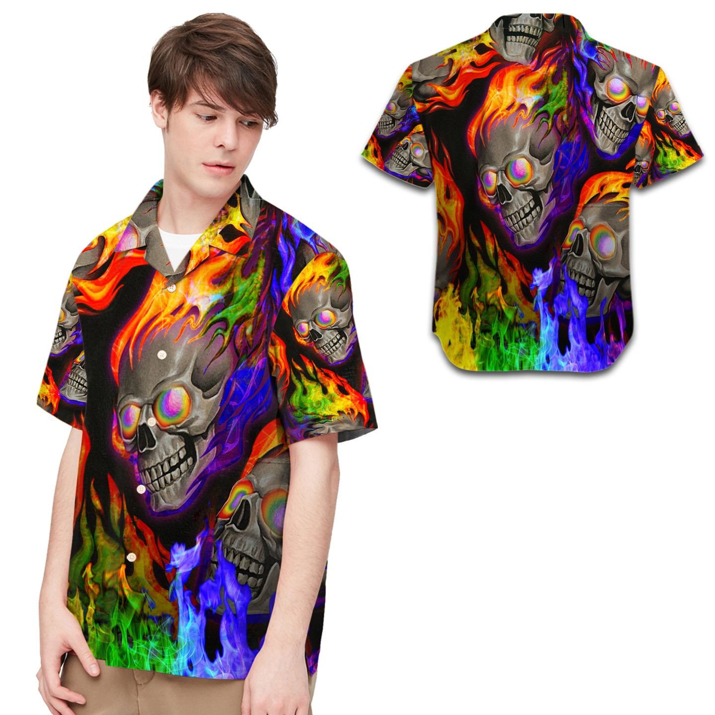 Lgbt Rainbow Flame Skulls Men Hawaiian Shirt For Lgbt Community In Pride Month