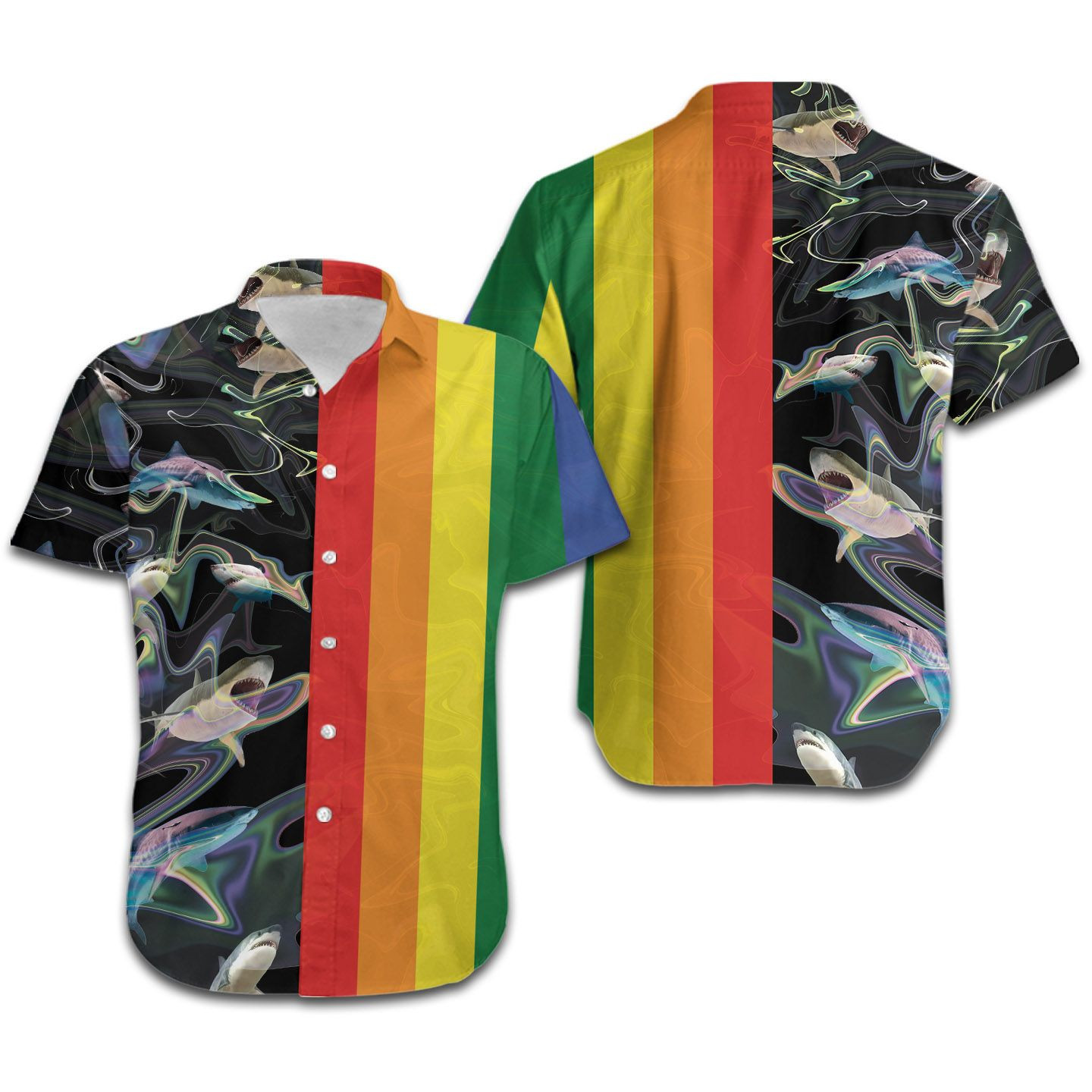 Lgbt Rainbow Sharks Men Hawaiian Shirt For Lgbtq Community In Daily Life – Gift For Shark Lovers