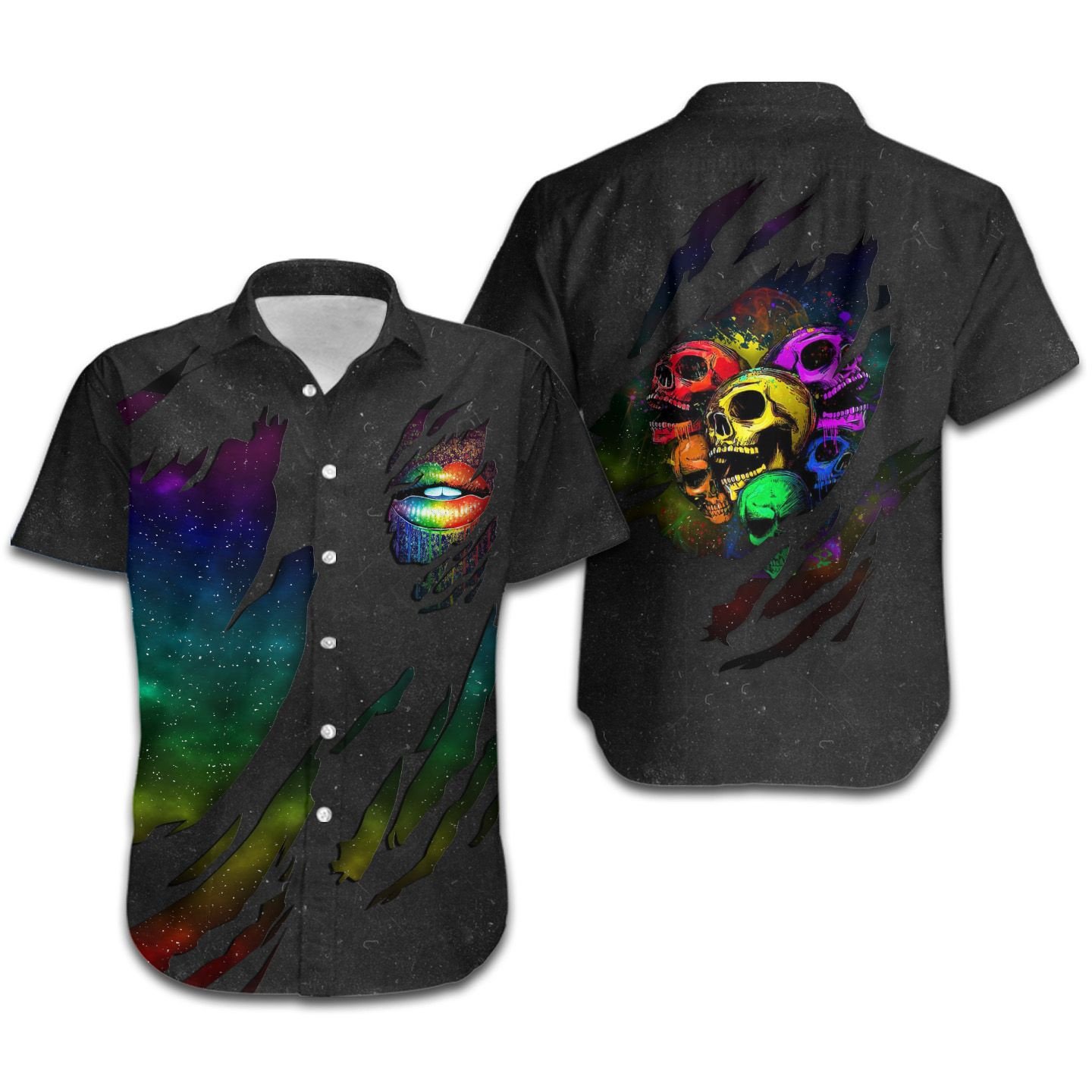 Lgbt Skulls Torn Fabric Women Hawaiian Shirt For Pride Month